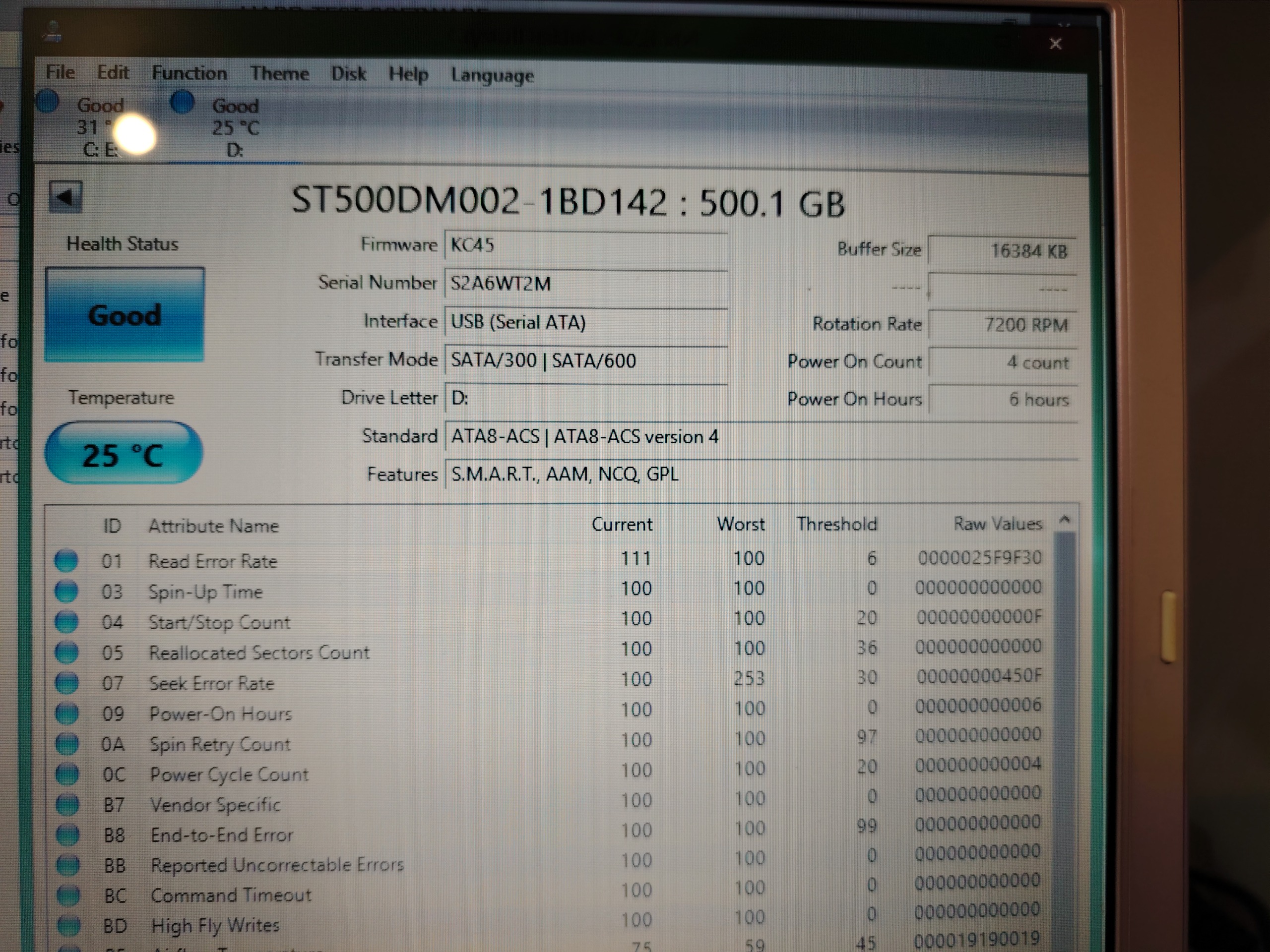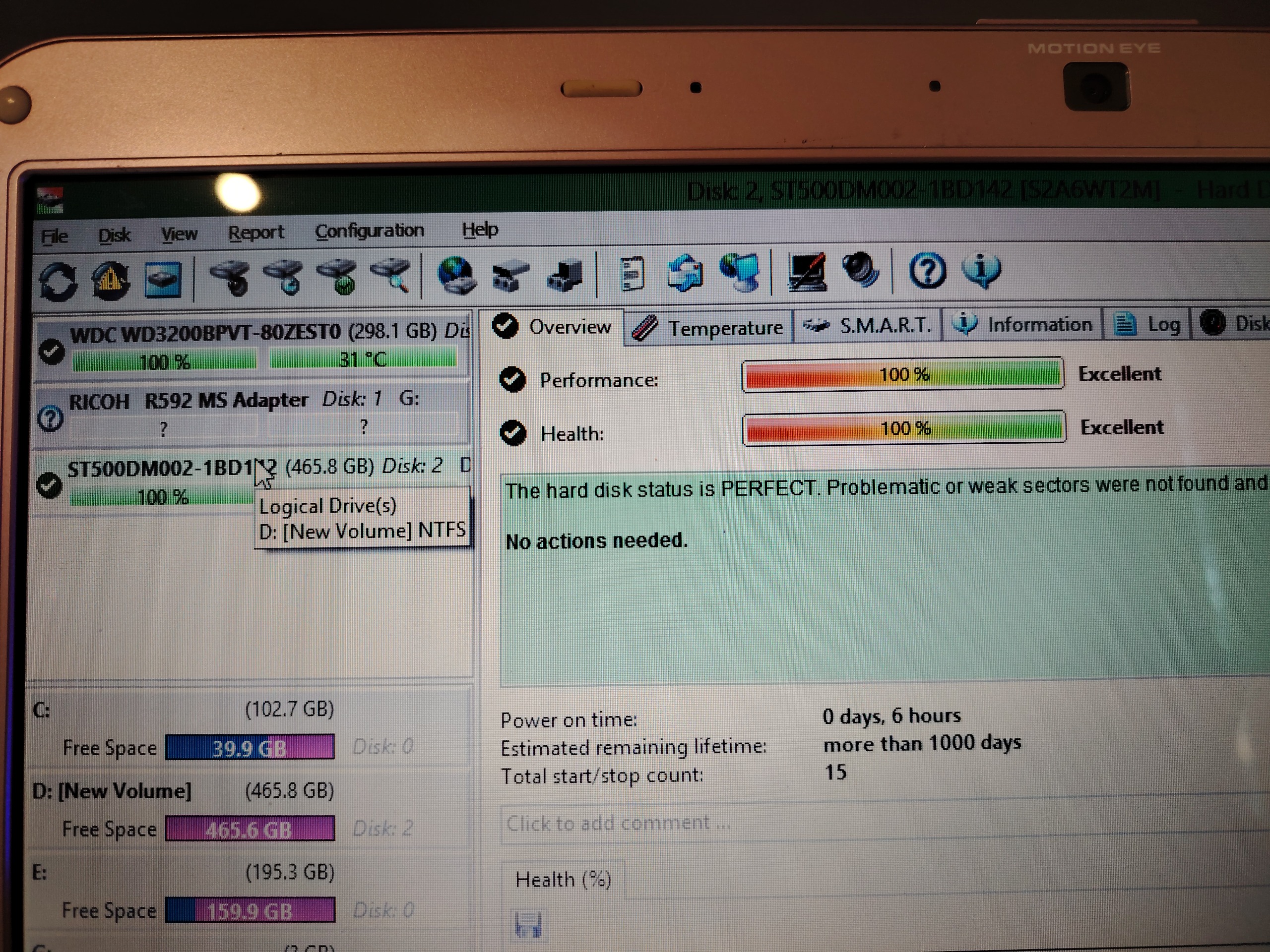 تصاویر تست سلامت هارد با دو نرم افزار مختلف گذاشته شده