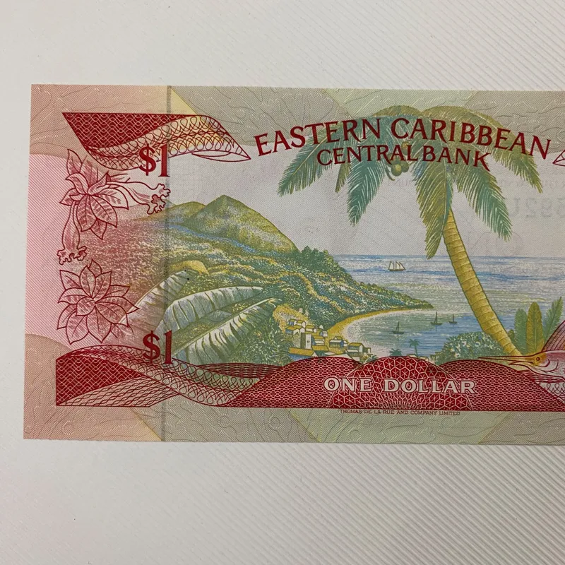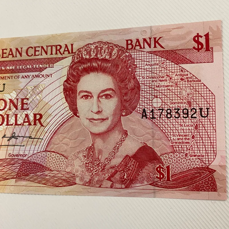 اسکناس قدیمی و زیبای یک دلار کارائیب شرقی با تصویر ملکه الیزابت