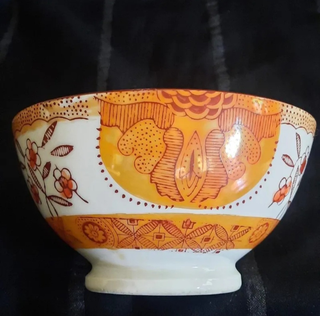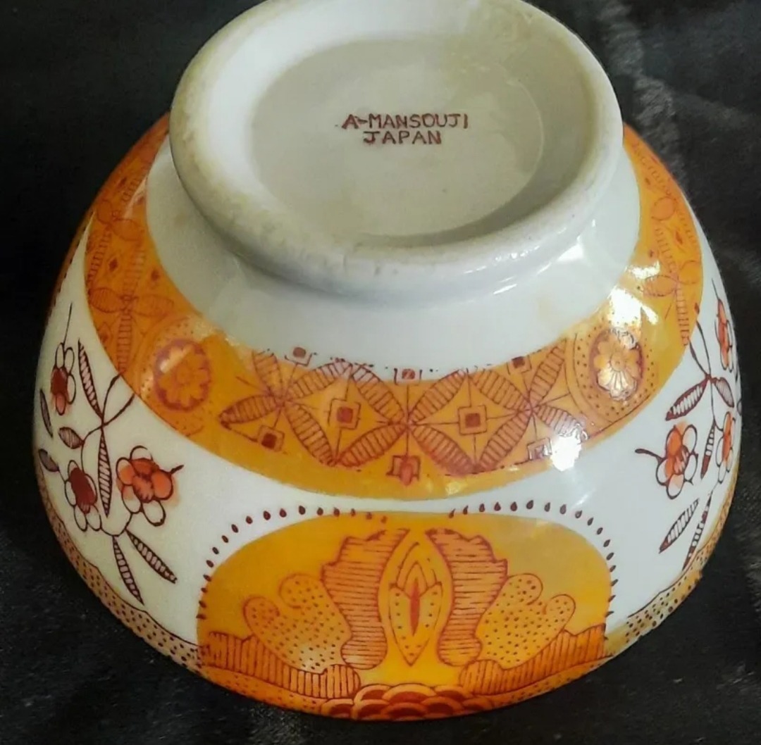 کاسه دست ساز کعب دار ساخت ژاپن عمر 70 چند نقطه بر جسته و چند نقطه سیاه و کمی خط و خش در کف ظرف به علت دست دوم بودن هست قطر 15 در عمق 7 سه تا موجود است سه تا رو با هم بخاید یک میلیون