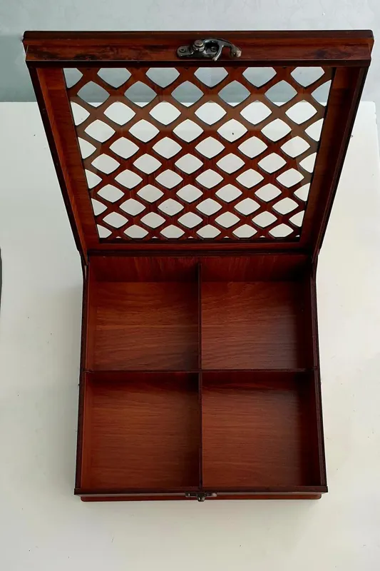 جعبه چوبی آجیل،دمنوش و شکلات طرح حصیری درب شیشه ای