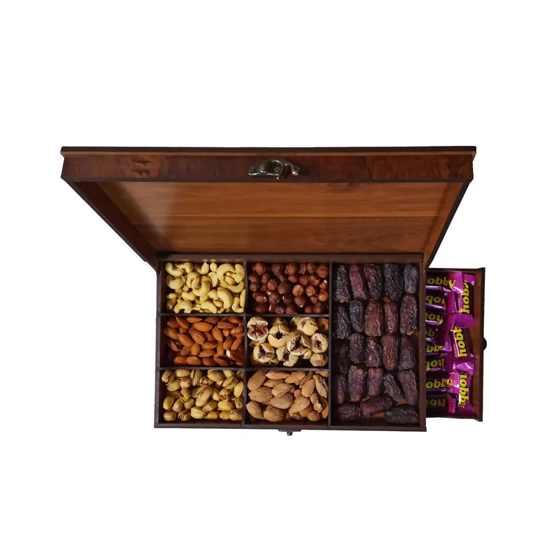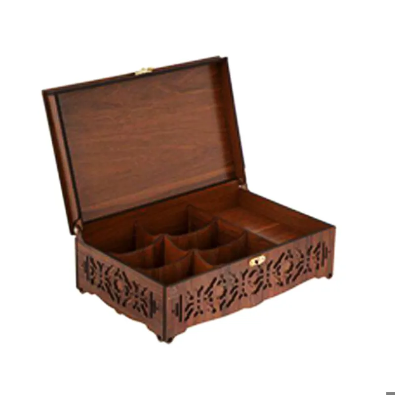 جعبه چوبی پذیرایی تی بگ مستطیلی درب چوبی در بغل