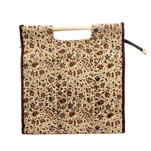 ساک ترمه دسته چوبی زیپ دار - ساک قلمکار