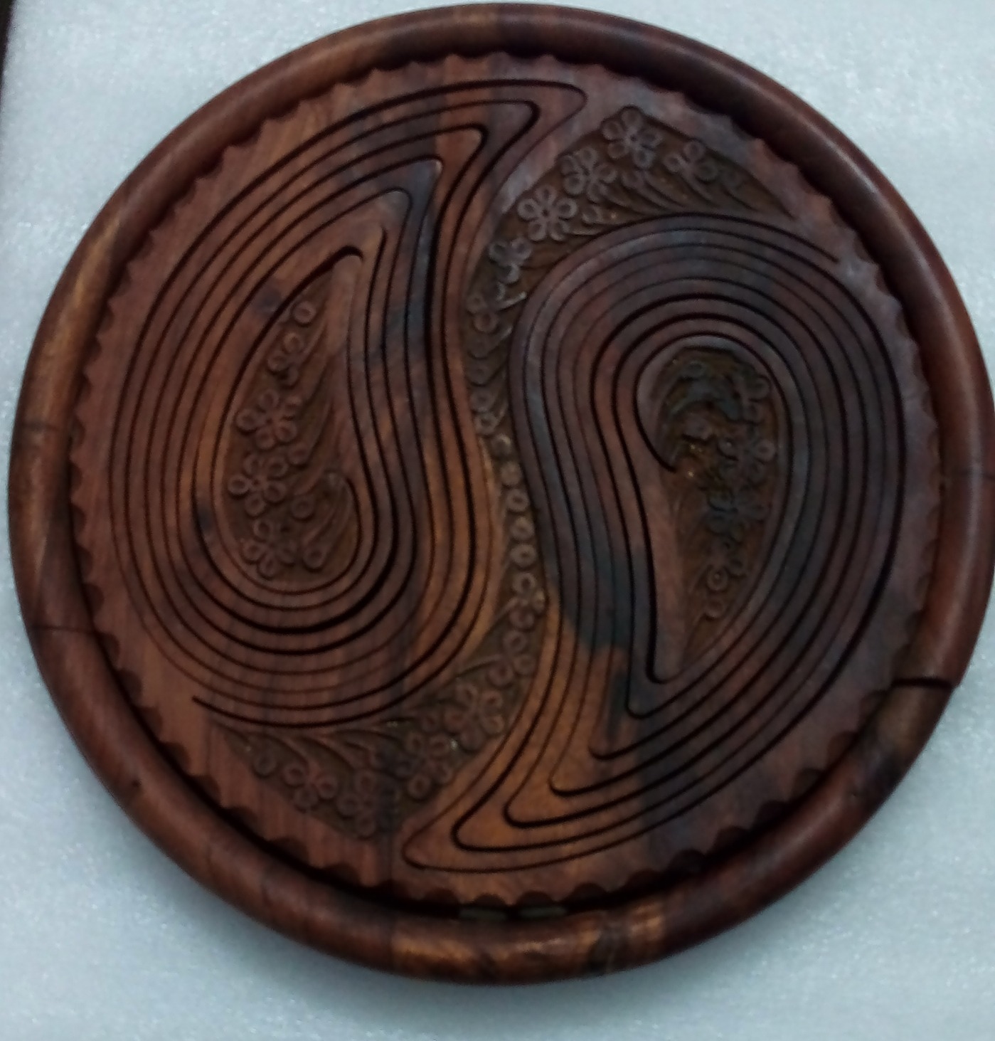 سبد چوبی دکوری باز و بسته شو به قطر 30 سانتی متری شیک و زیبا و منحصر به فرد، کار دست هنرمندان ایرانی