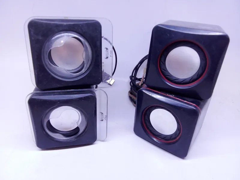 دو جفت اسپیکر مشابه تصویر سالمن فقط صداشون زیاد نیست حالا یا صداشون همینطوریه و یا ایراد دارن خلاصه ظاهرشون خوبه بلندگوها پارگی نداره به همین صورت ارسال میشه بدون مرجوعی
