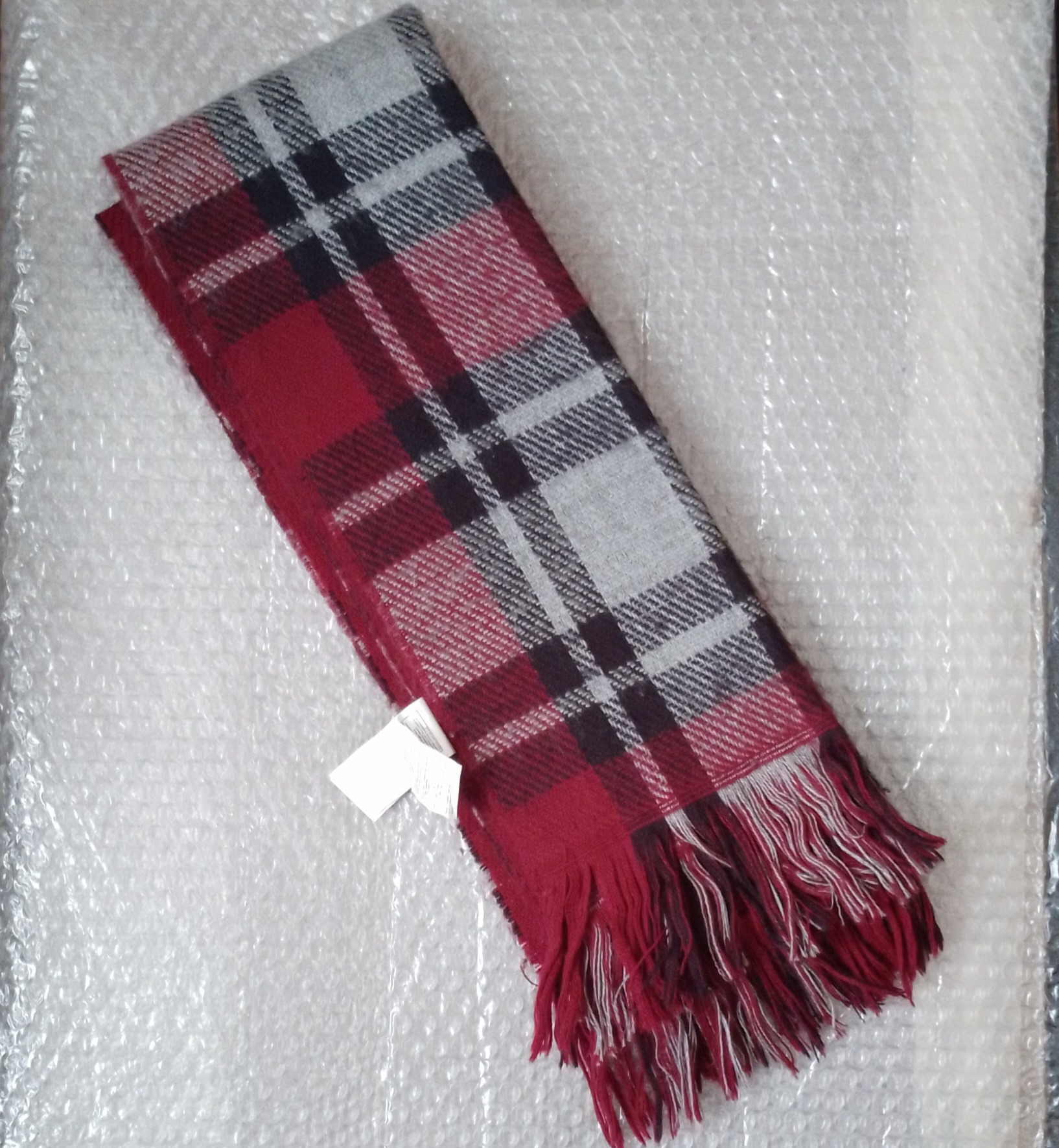 یک طرف شال رنگ زرشکی هست و طرف دیگرش چارخونه ای ترکیبی از رنگ زرشکی و طوسی.
