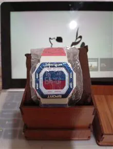 ساعت دیجیتال با بند دوربگ آبی قرمز
