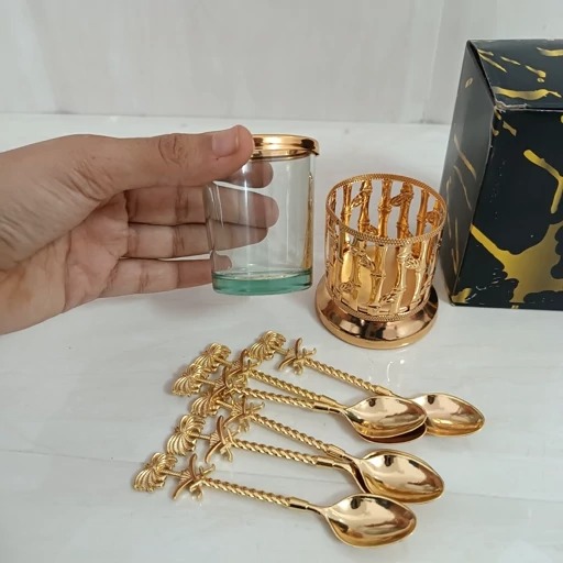 ست قاشق همراه استند شامل 6 عدد قاشق چای خوری پایه برای نگهداری از آن طراحی شده است. این محصول مناسب برای پذیرایی و در سینی سرو قرار میگیرد. مناسب برای دکوراتیو و استفاده برای پذیرایی است ابعاد 5 در 8.5 سانت به ابعاد دقت کنییید
