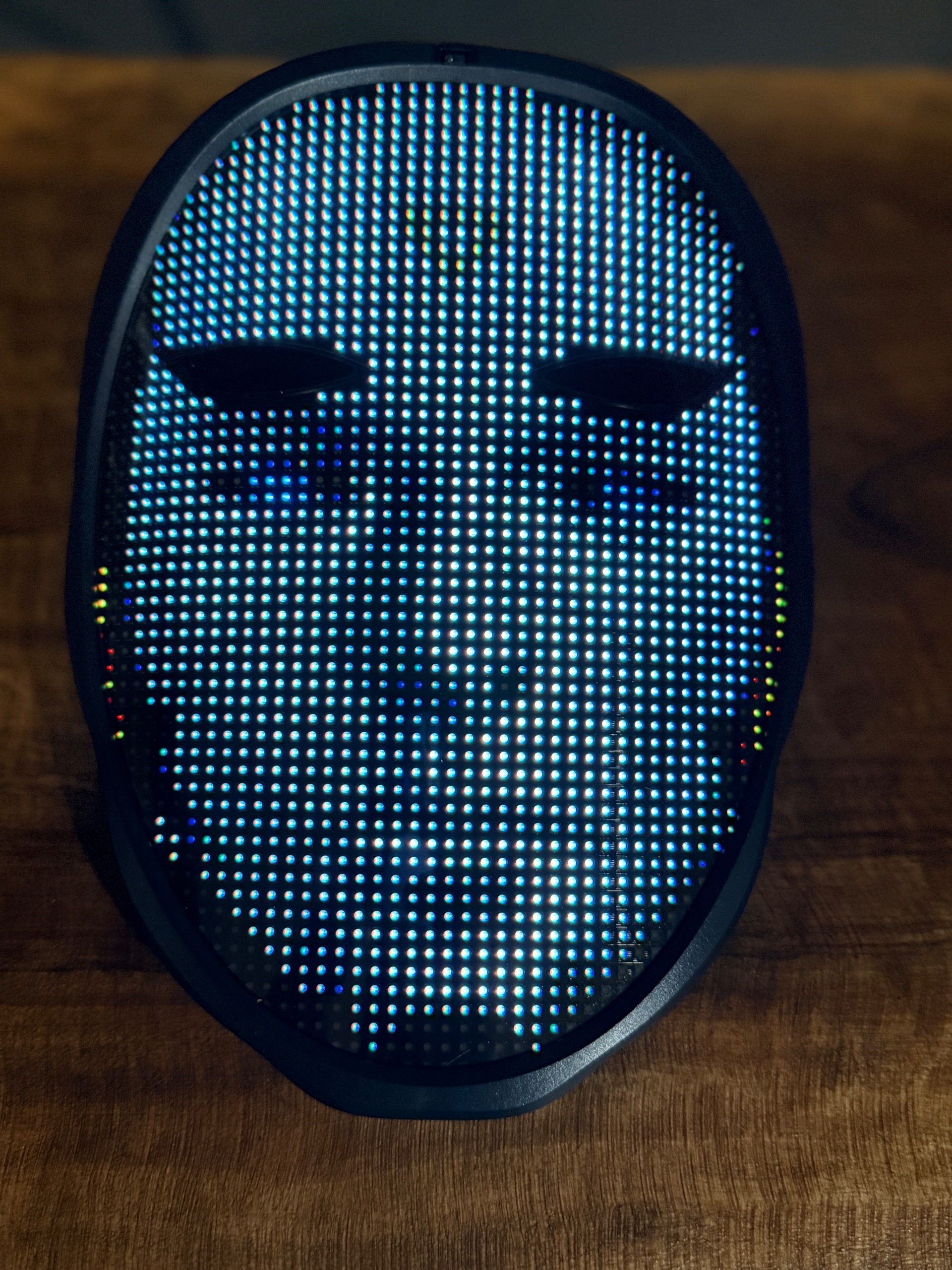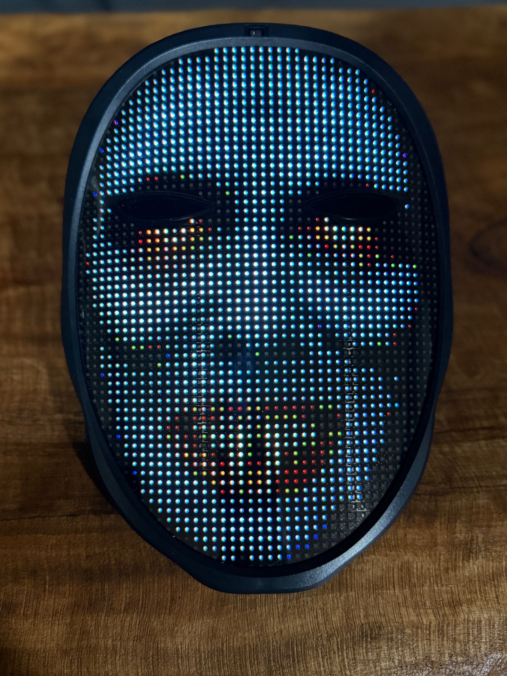 با اتصال به گوشی میتوان از چندین مدل های افکت زیبا و جذاب متنوع استفاده کرد(45 انیمیشن و 70 تصویر ثابت پیش فرض)و نیز میتوان متن دلخواه خود را نوشته و روی ماسک نمایش داد این ماسک قابل استفاده برای dj ها و مناسب مراسمات مهمانی و پارتی و عروسی و میباشد.اگر موسیقی را در برنامه پخش میکنید یا با ماسک LED صحبت میکنید (میکروفون را در برنامه روشن کنید)، اکولایزر صدا به آرامی روی ماسک صورت نشان داده میشود. با تعداد زیادی تصاویر از پیش تعیین شده