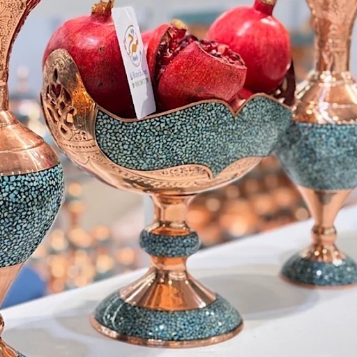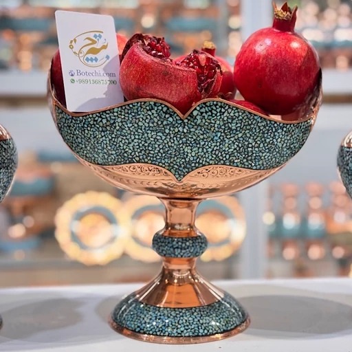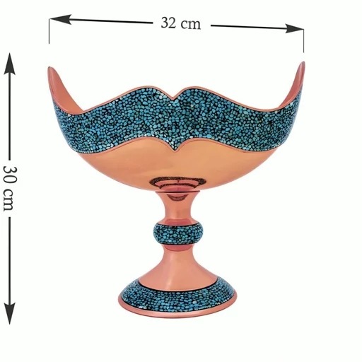 ابعاد: ارتفاع 30سانتی متر و اندازه دهنه 32سانت جنس:مس و فیروزه کوبی اصل، دور حاشیه قلمزنی و شبکه بری رنگ:مطابق تصویر ، صفر تا صد کار دست مناسب برای:هدیه دادن (روز مادر، روز زن، مناسبتهای خاص) استفاده در دکوراسیون منزل و محل کار