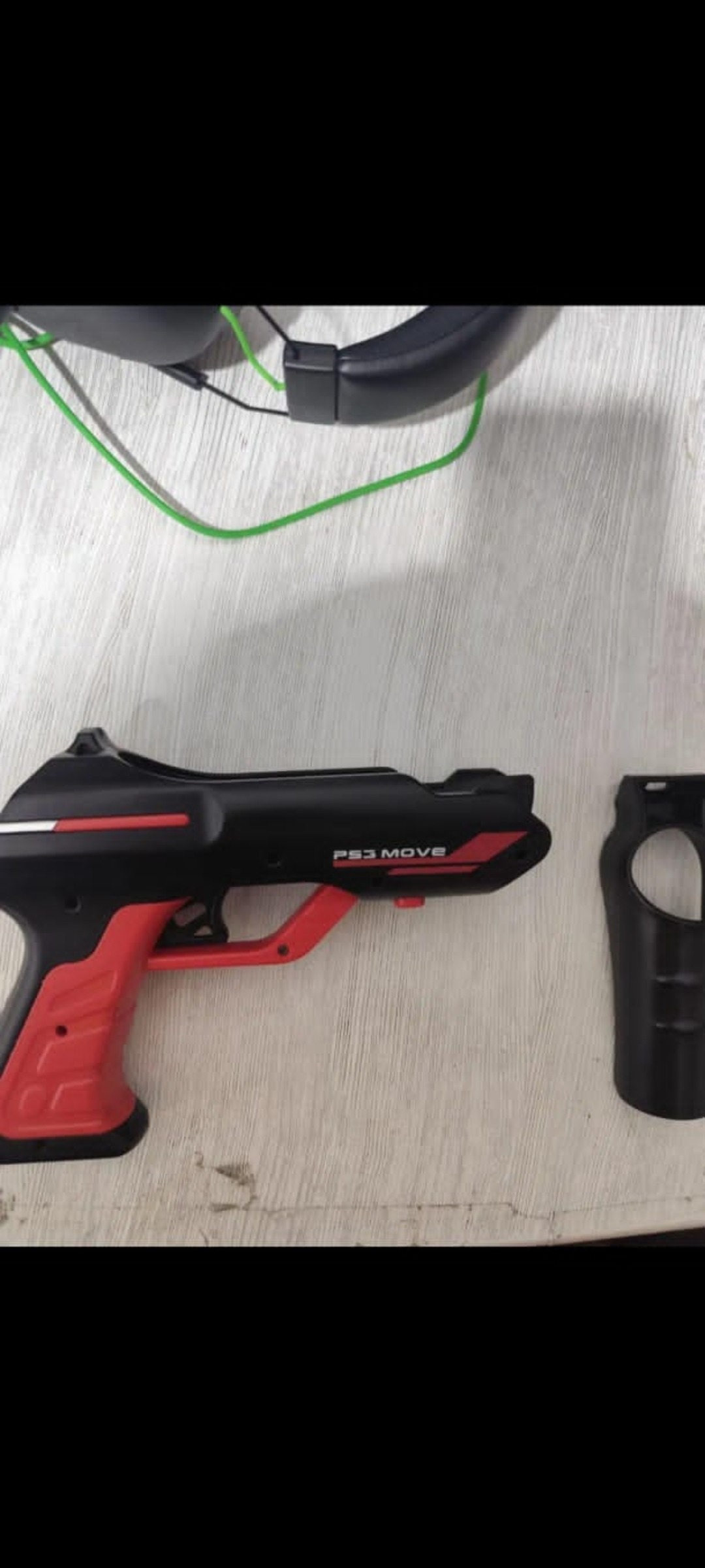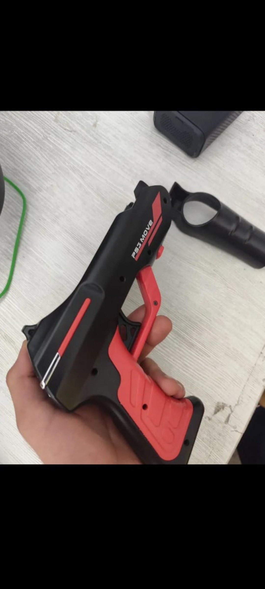 تفنگ موو پلی استیشن که شبیه به اسلحه پلاستیکی طراحی شده، برای بازی های تیراندازی سازگار شده تا گیمر بیشتر در فضای بازی غوطه ور شود. کافیست دسته موو را درون تفنگ موو پلی استیشن تعبیه کرد تا گیمر بصورت دقیق تیراندازی کند. تفنگ موو پلی استیشن دارای دکمه قفل کردن