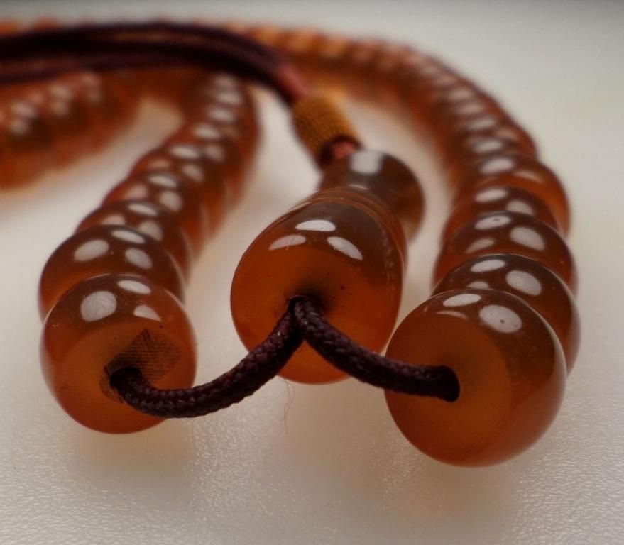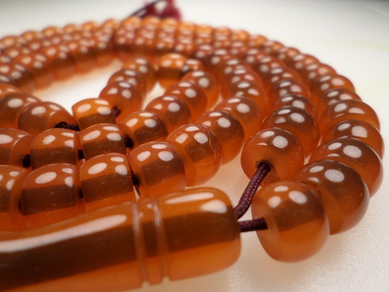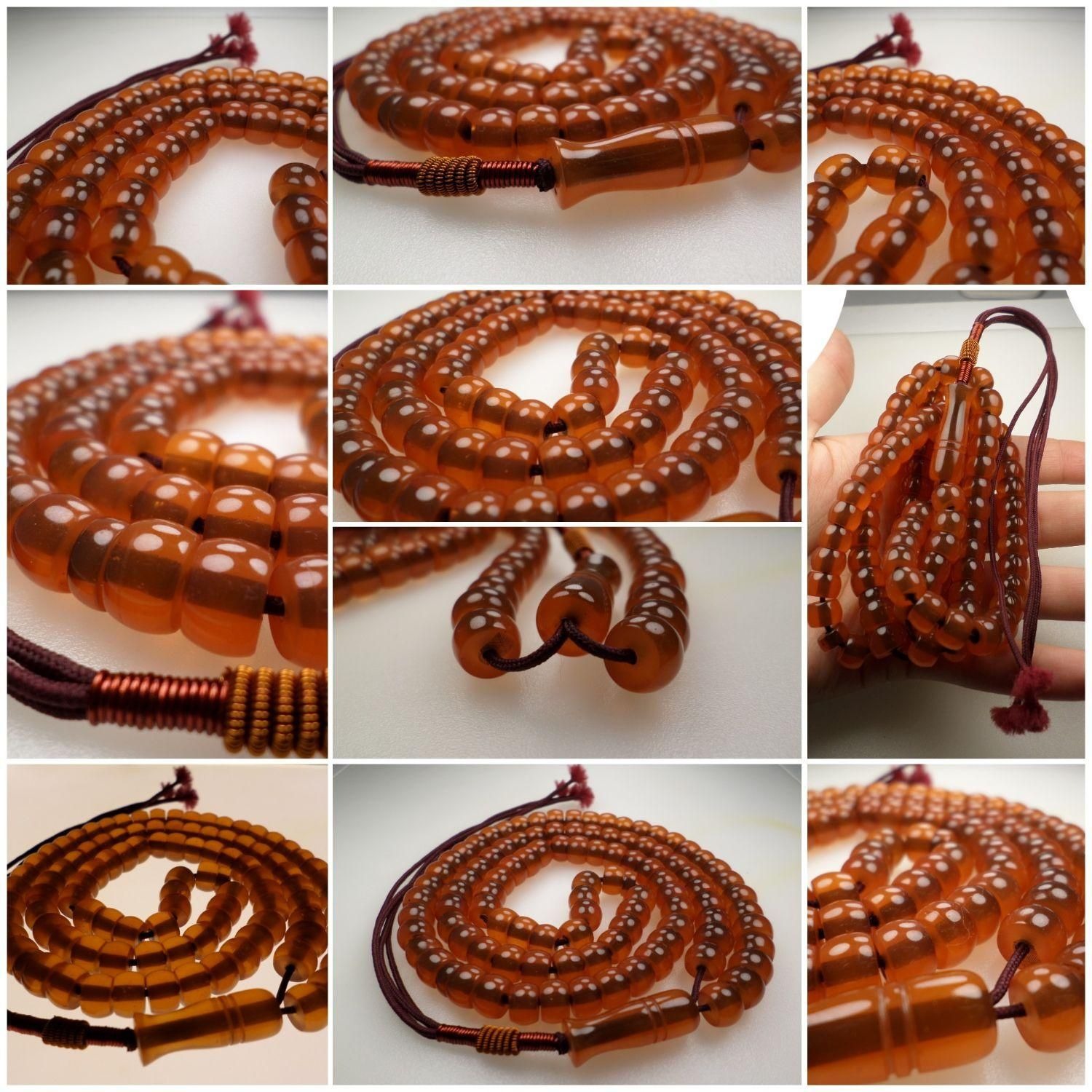 تسبیح سندلوس 101 عددی رنگ کمیاب  و داخل سوراخ ها لاک خورده ، نمونه خاص با شمش اروپایی و تراش تمام دست ، نسبتا کهنه تراش قیچی بر تراش تمام دست .