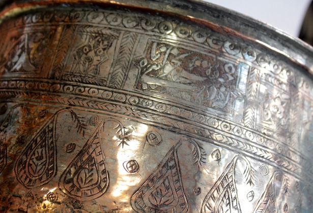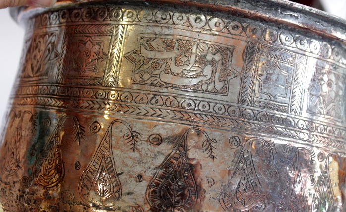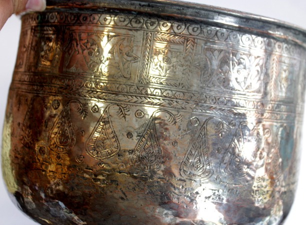 بادیه مسی قاجاری تمام قلم دستی قدمت بالای 150 سال