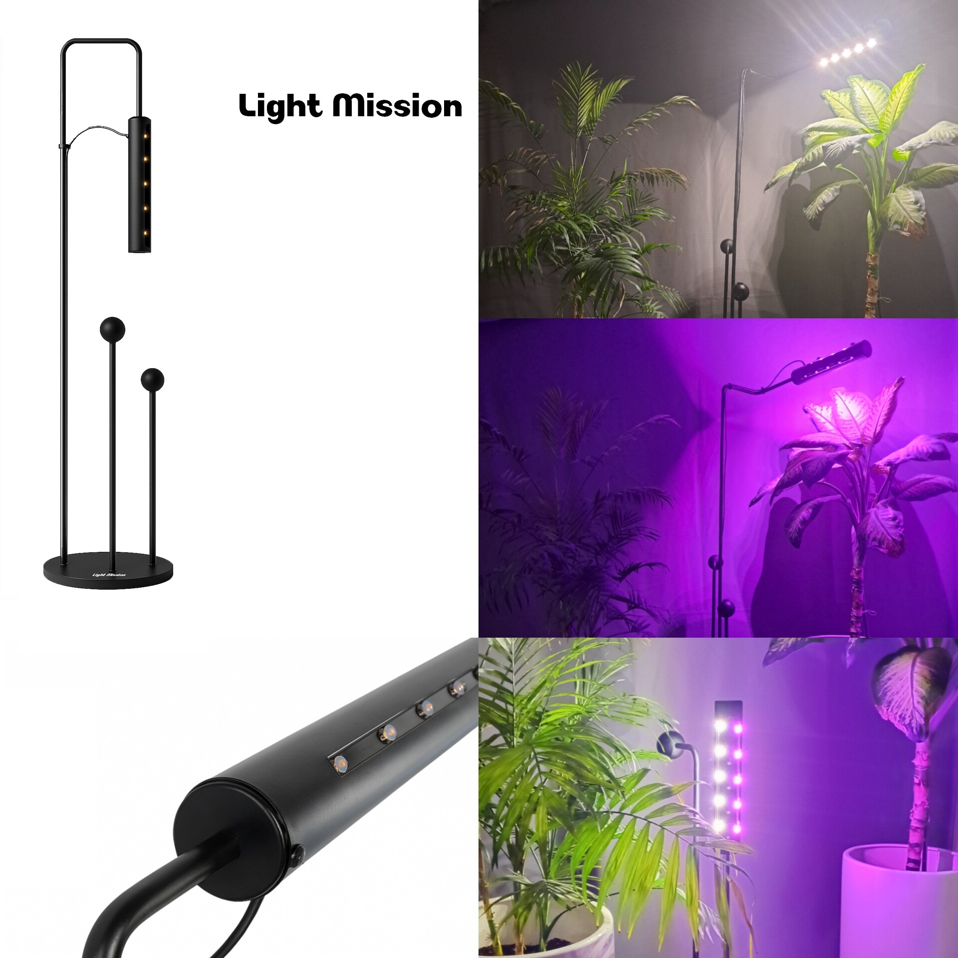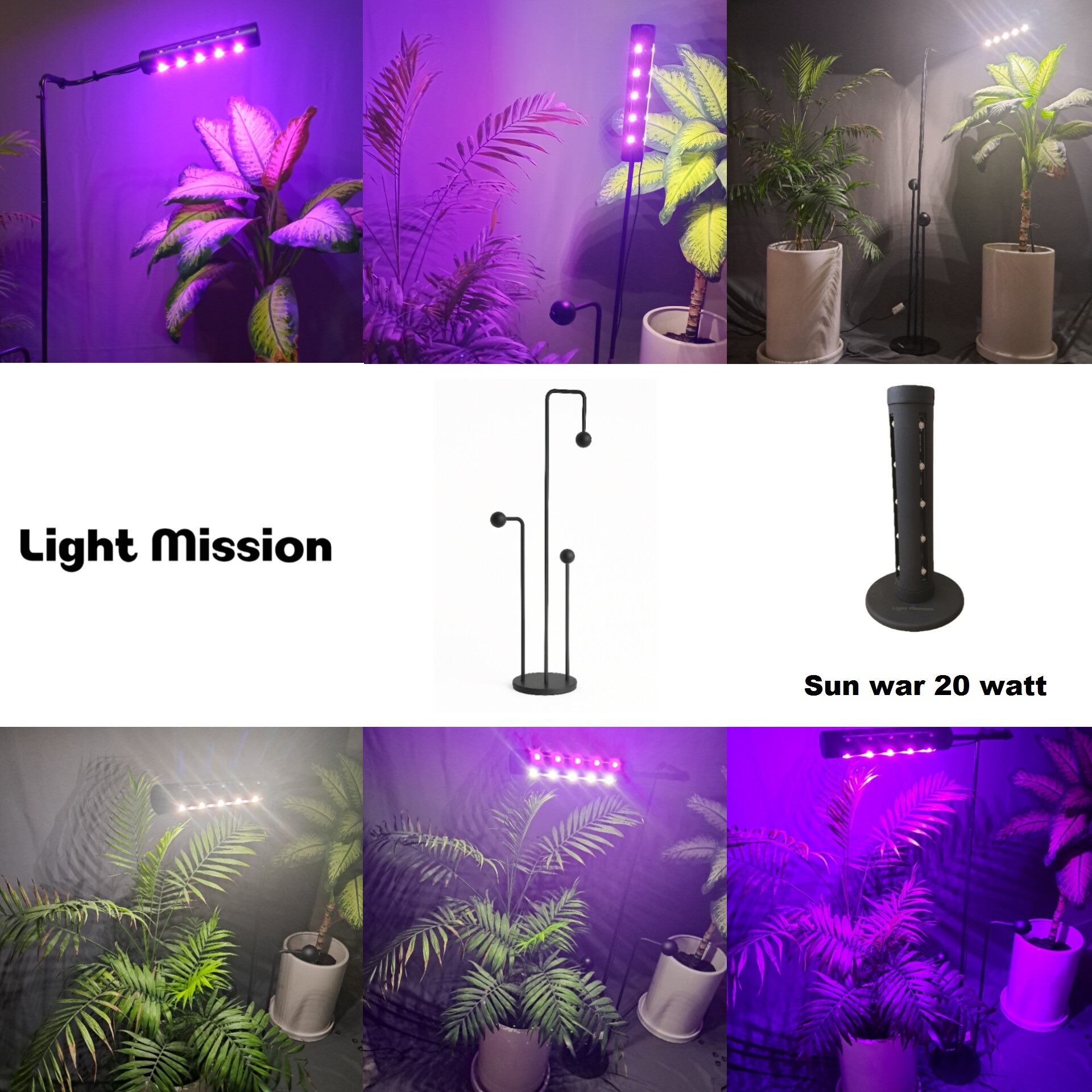 چراغ رشد گیاه لایت میژن مدل sun war 20 watt شامل چهار شیار بر بدنه است که هر شیار 5 وات است ، دو شیار بنفش فول اسپکتروم و دو شیار دیگر نچرال فول اسپکتروم است که با دو کلید قابلیت کنترل را دارد . براحتی به پایه متصل میشود و میتواند بصورت افقی و عمودی بر حسب سلیقه شما تنظیم شود .