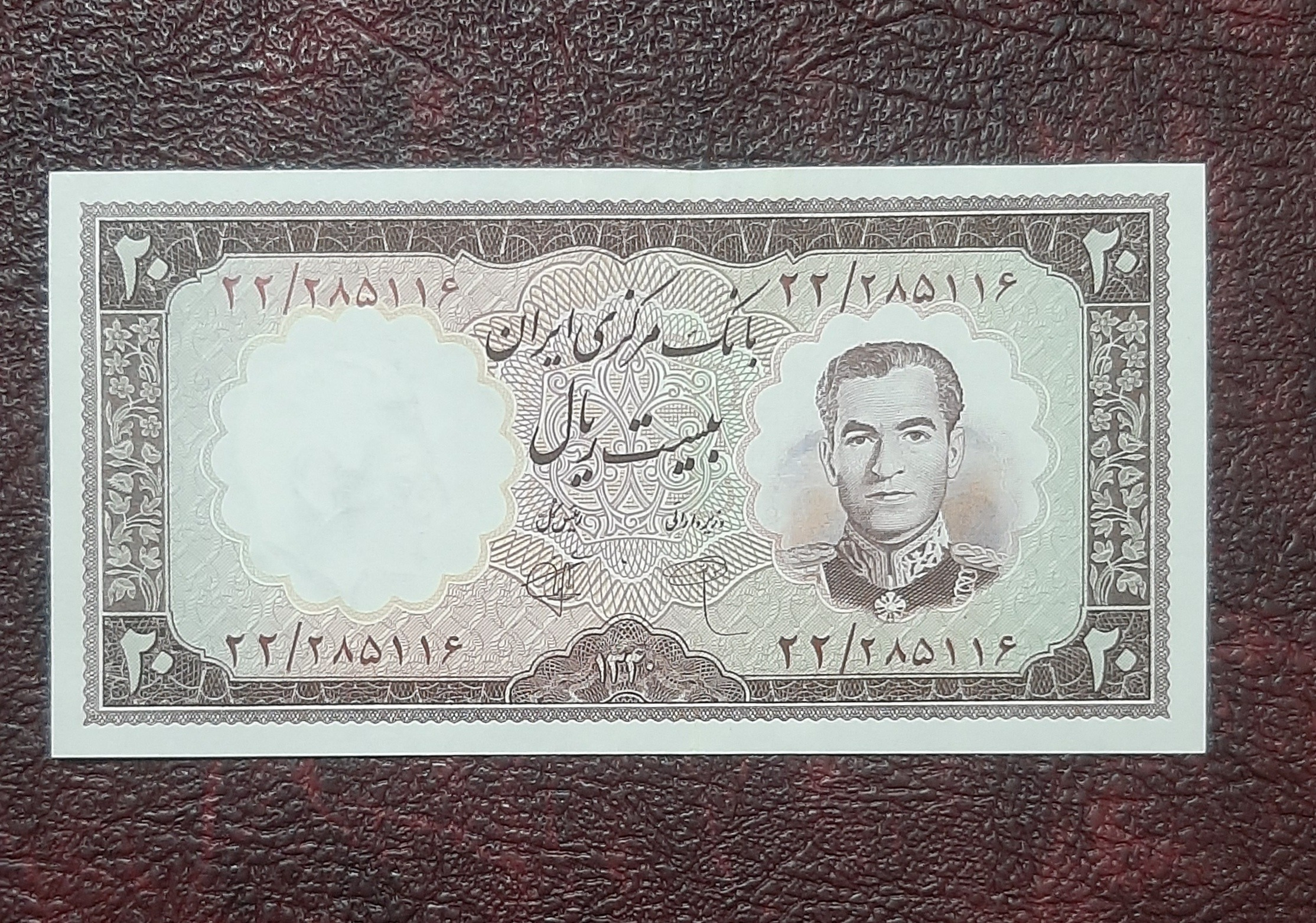 20 ریالی 1340 - شماره سیاه - AUNC - توضیح دارد