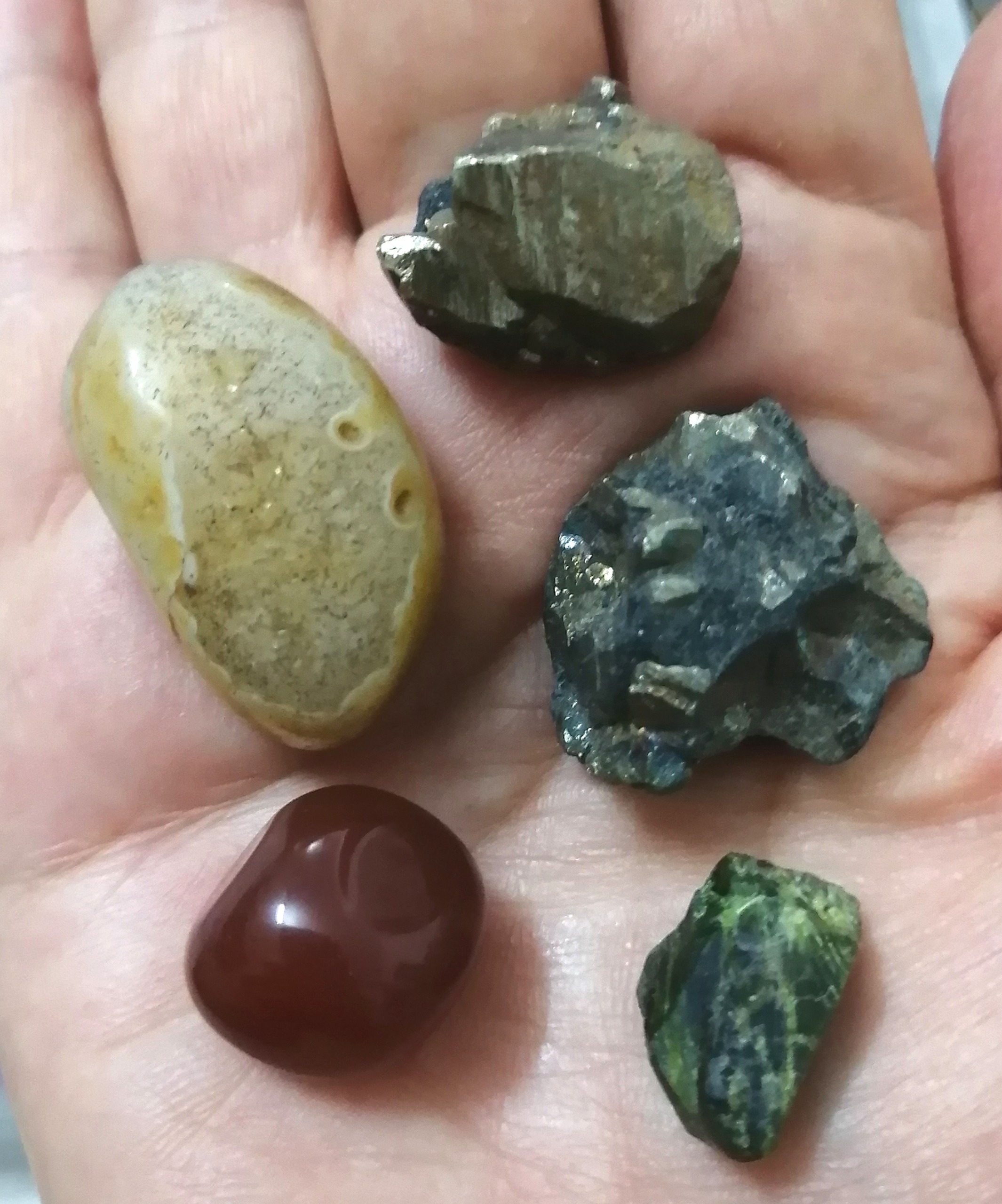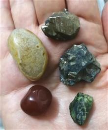 پک 5 عددی راف کلکسیونی بسیار زیبای گارنت سبز، عقیق و پیریت به فروش میرسد