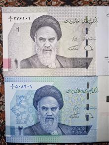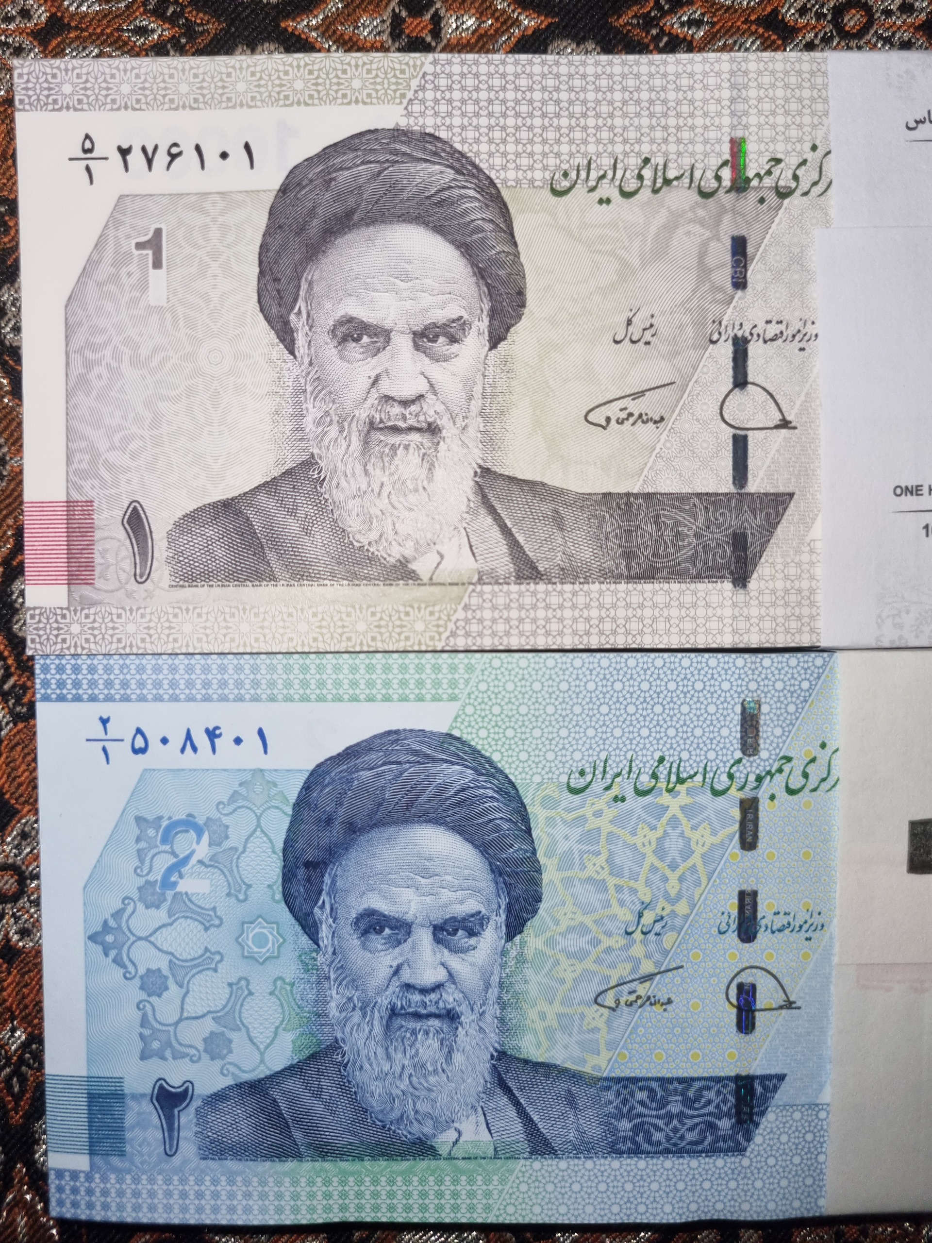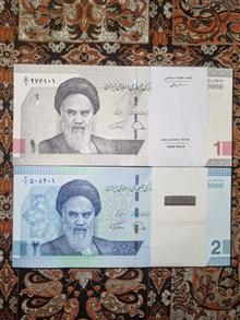 ست یک بسته اسکناس هزاری همراه با یک بسته اسکناس دوهزاری جدید سریال کاهشی
