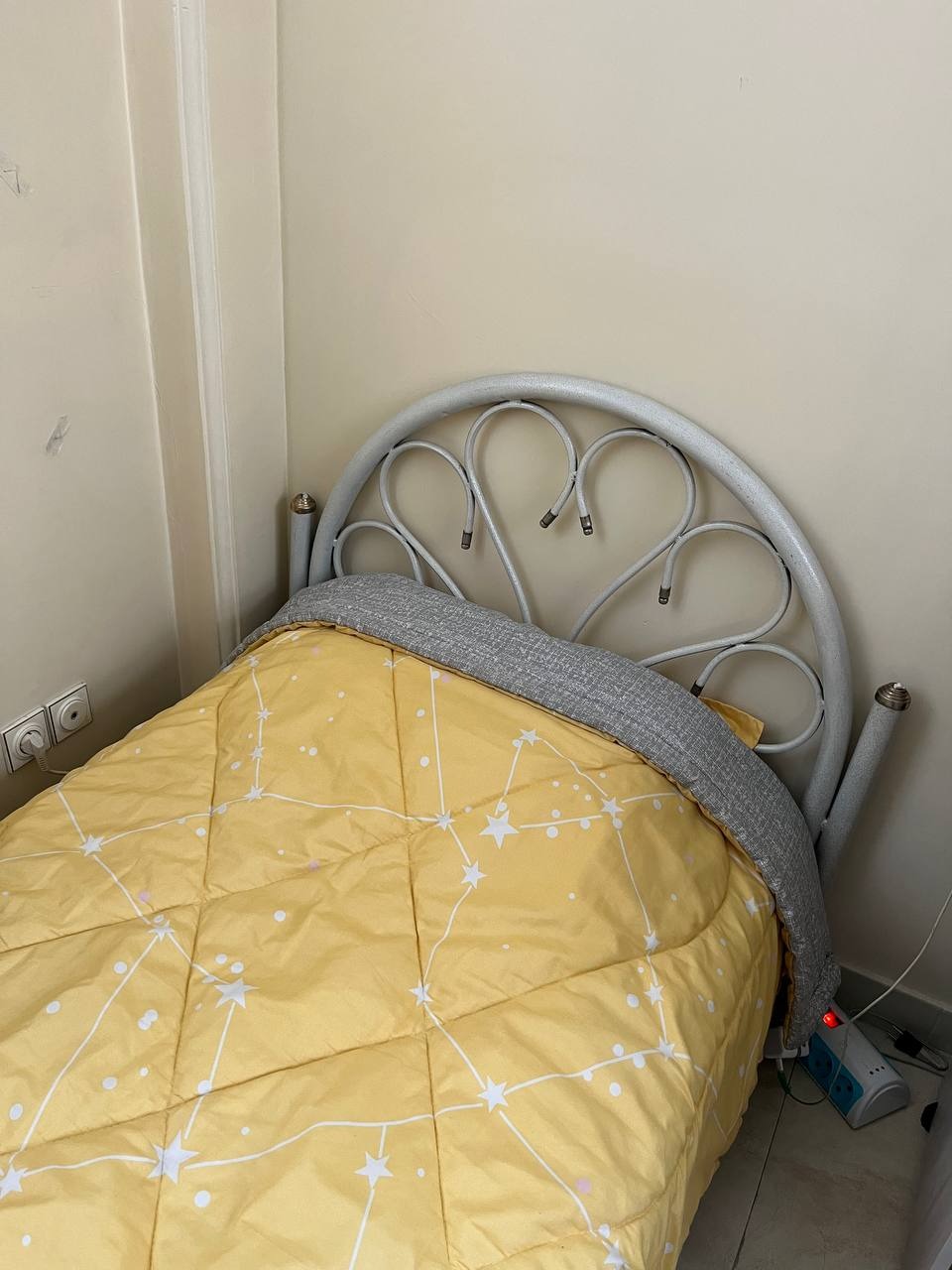 تخت تکنفره فلزی کاملا سالم و بدون ایراد به همراه تشک و تخته چوبی یک سرهی زیر کار