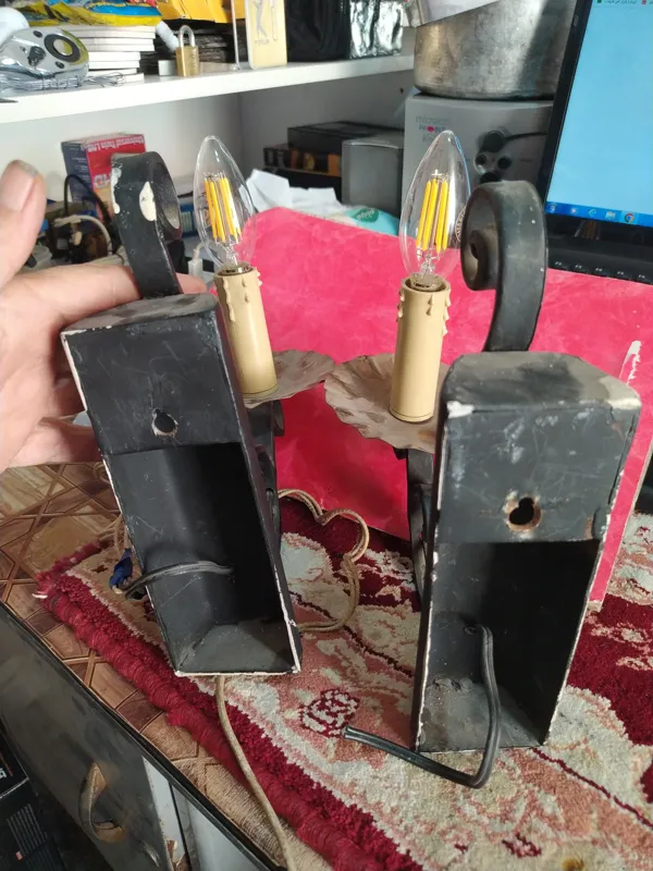 یک جفت چراغ دیواری قدیمی دست ساز