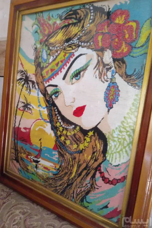تابلوی کوبلن زیبا عروس کارون با قاب چوبی