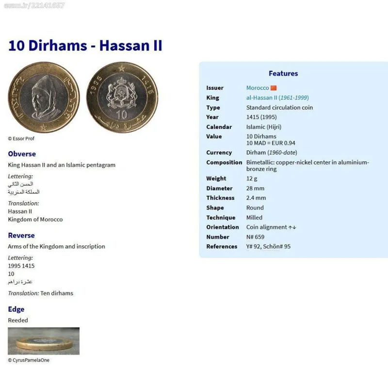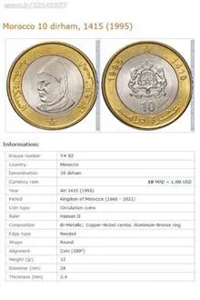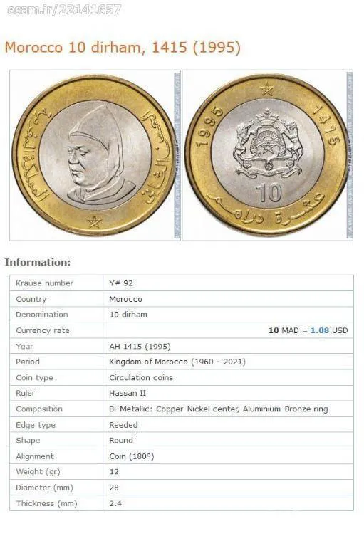 سکه 10 درهم مراکش 1995 (نایاب)