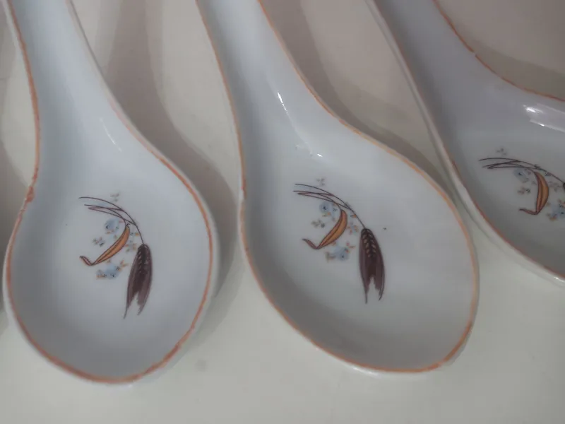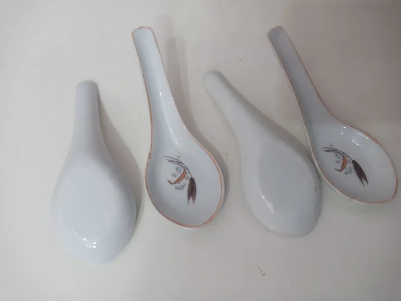 چهار عدد قاشق آجیل خوری چینی قدیمی با نقش گل.فروش بصورت یکجا باهم.