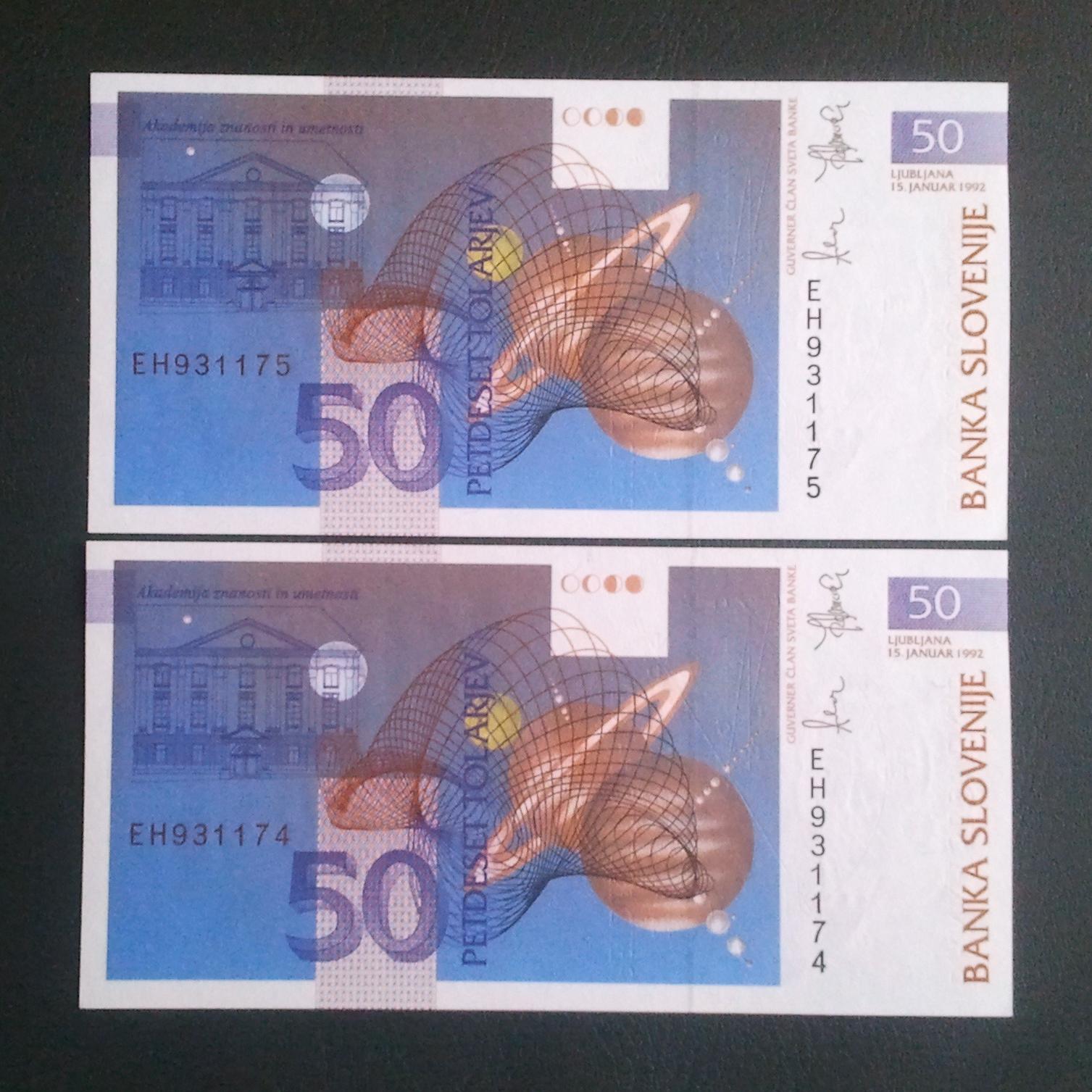 اسکناس تک 50 تولار اسلوونی 1992