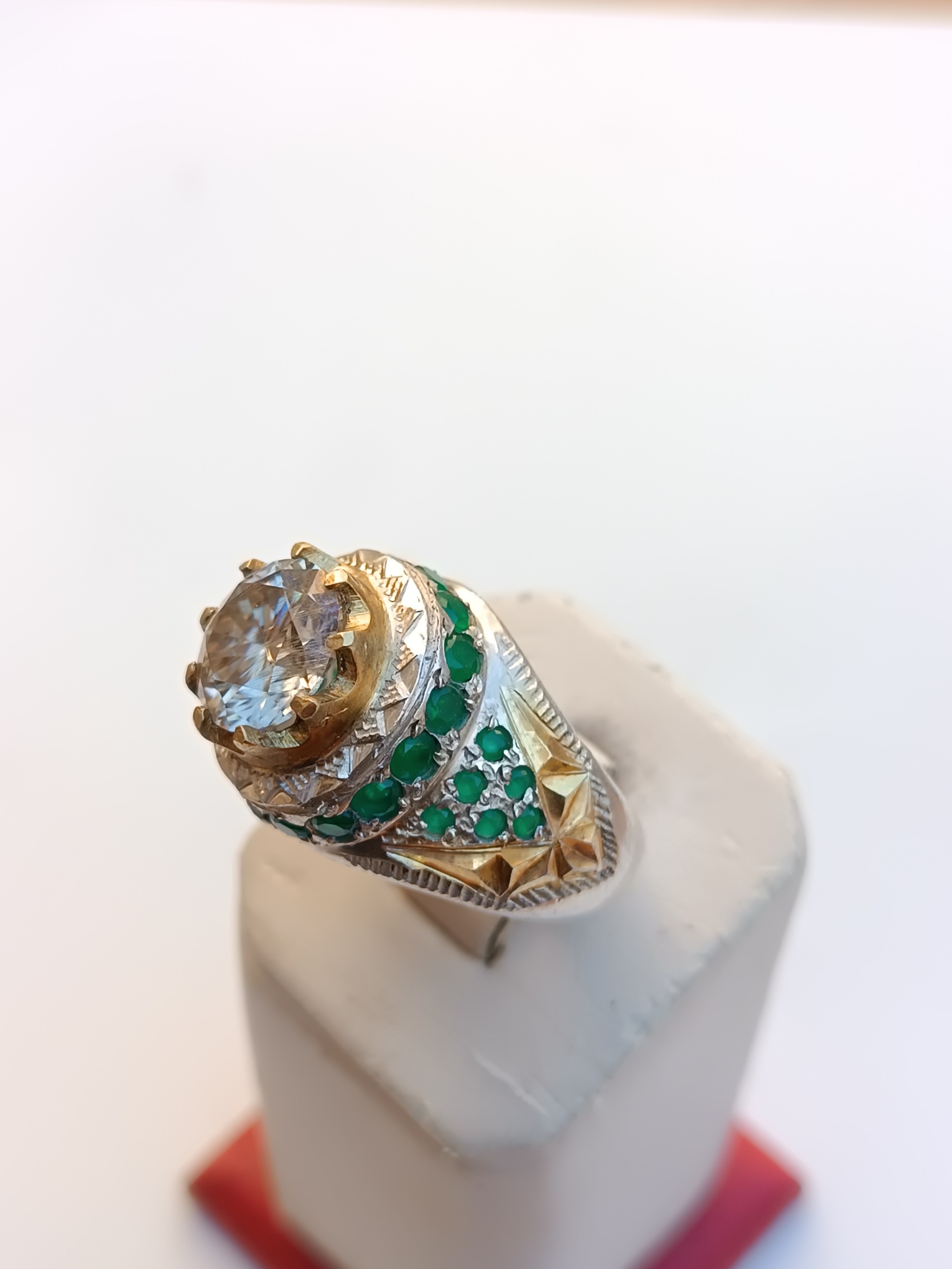 انگشتر نقره موزینایت الماس روس مخراج کاری دستساز