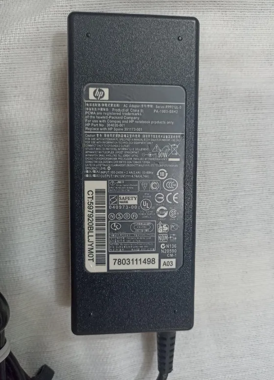 شارژر اصلی و رو لپ تاپی اچ پی hp سوکت گرد و بزرگ با ولتاژ 19 ولت و 4.74 آمپر ( فیش با ابعاد 5 در 7.4 میلیمتر) این شارژر از روی لپ تاپ hp که صفحه اش ضربه خورده و چون قصد تعمیر آن را نداشتیم، برداشته شده و برای فروش عرضه شده است.
