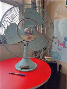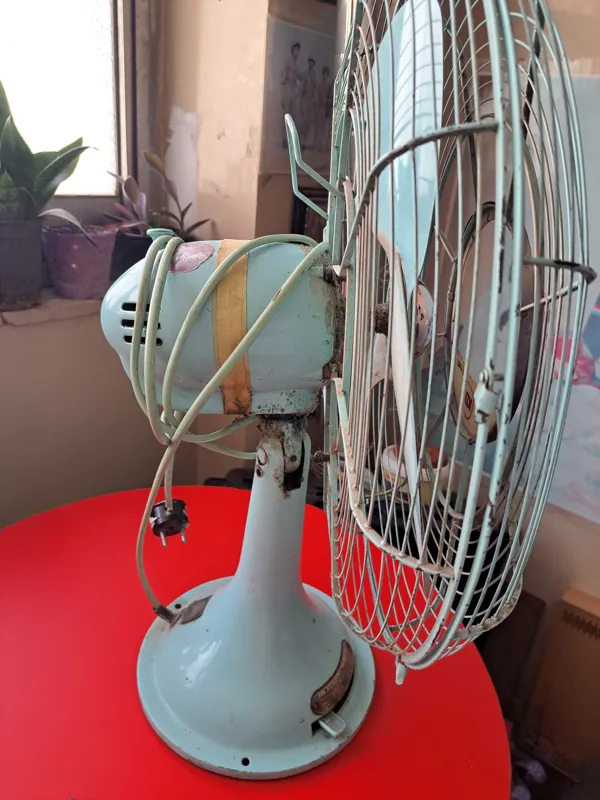 پنکه فوق ساخت شرکت قدیمی KDKژاپن  در شهر اوزاکا در حدود 80 سال قبل میباشد .  بخوبی هنوز کار میکند کمی احتیاج به تمیز کاری و روغن دارد . و کاملا قابلیت کار داشته درجه باد آن با اهرم تنظیم میشود.