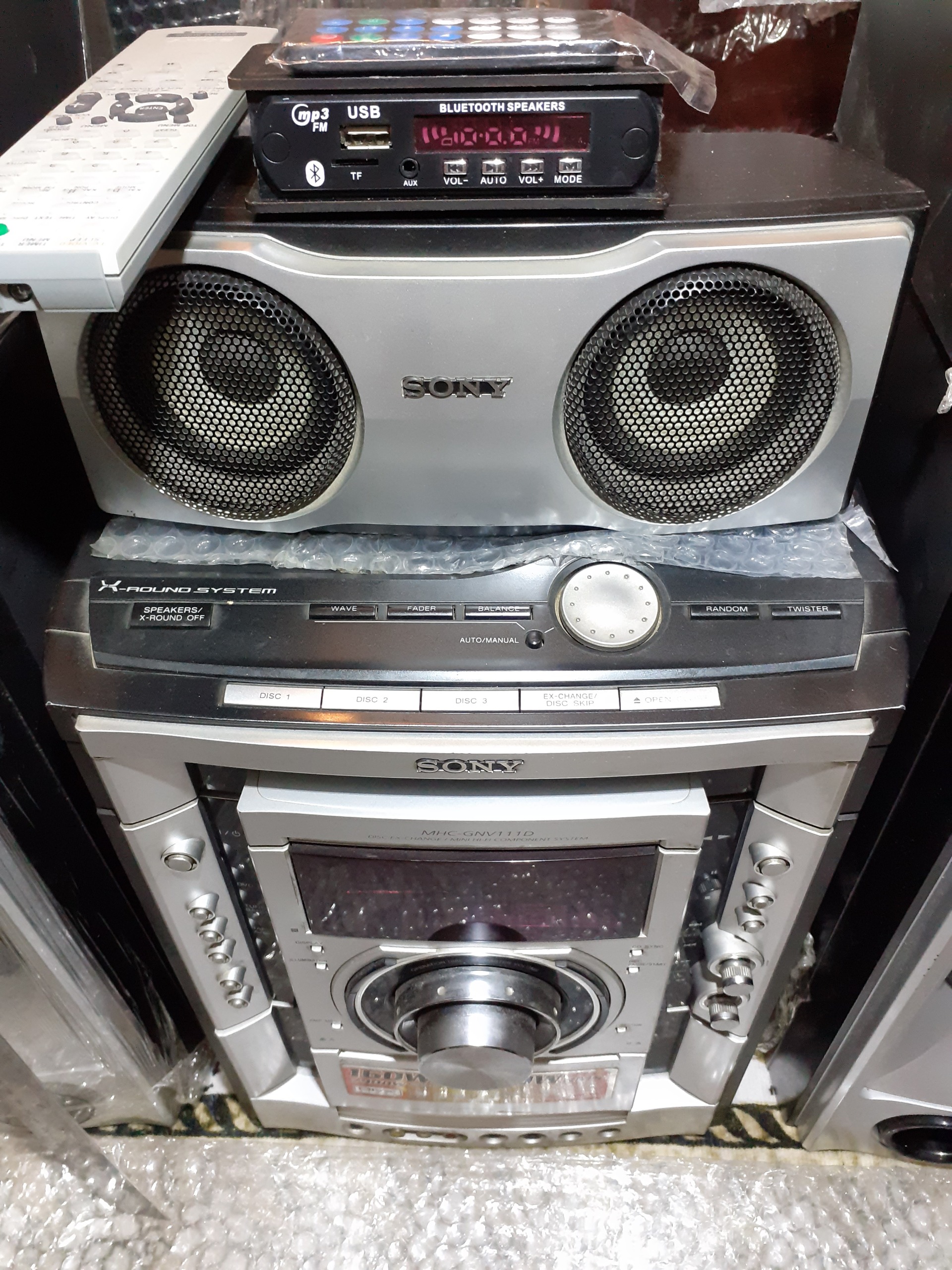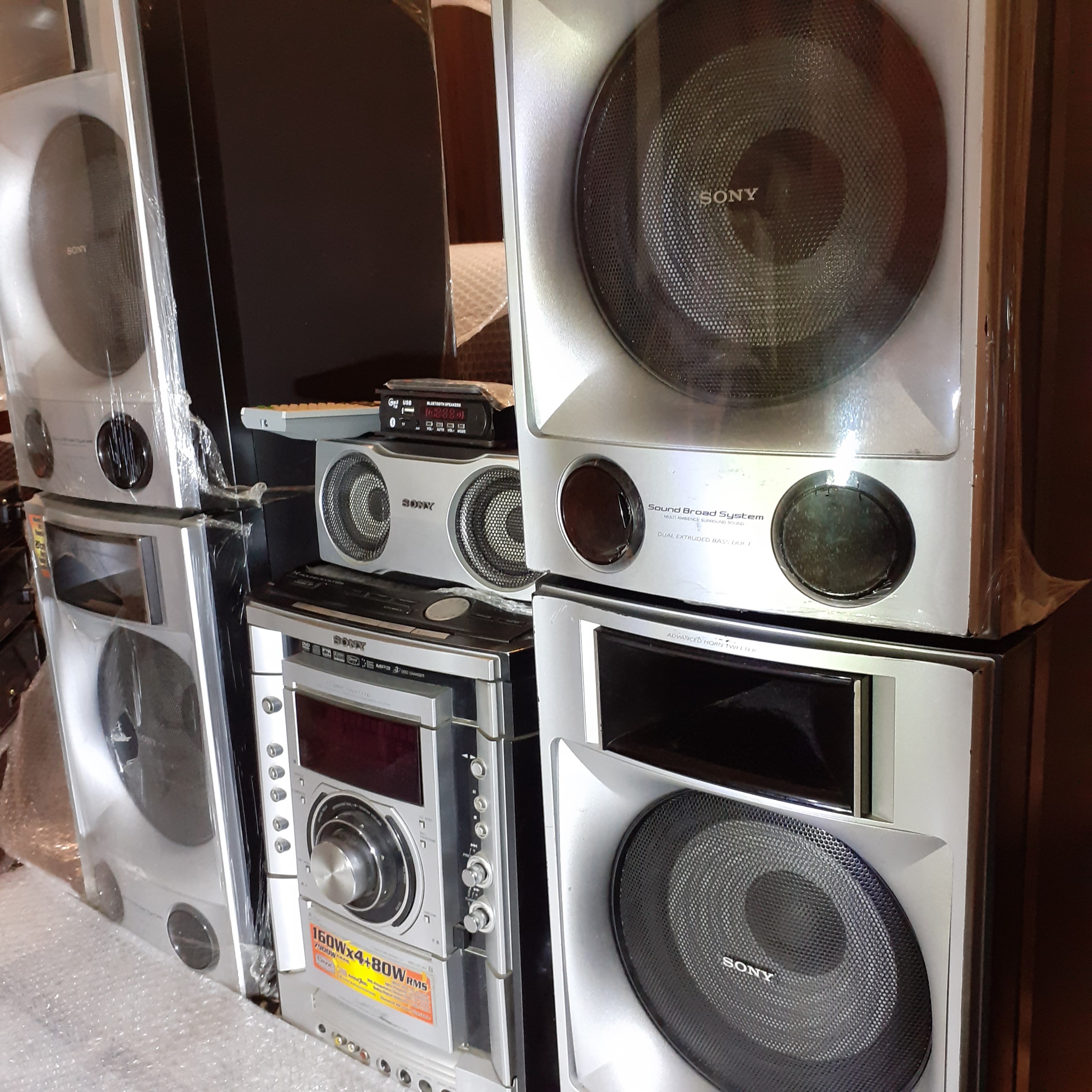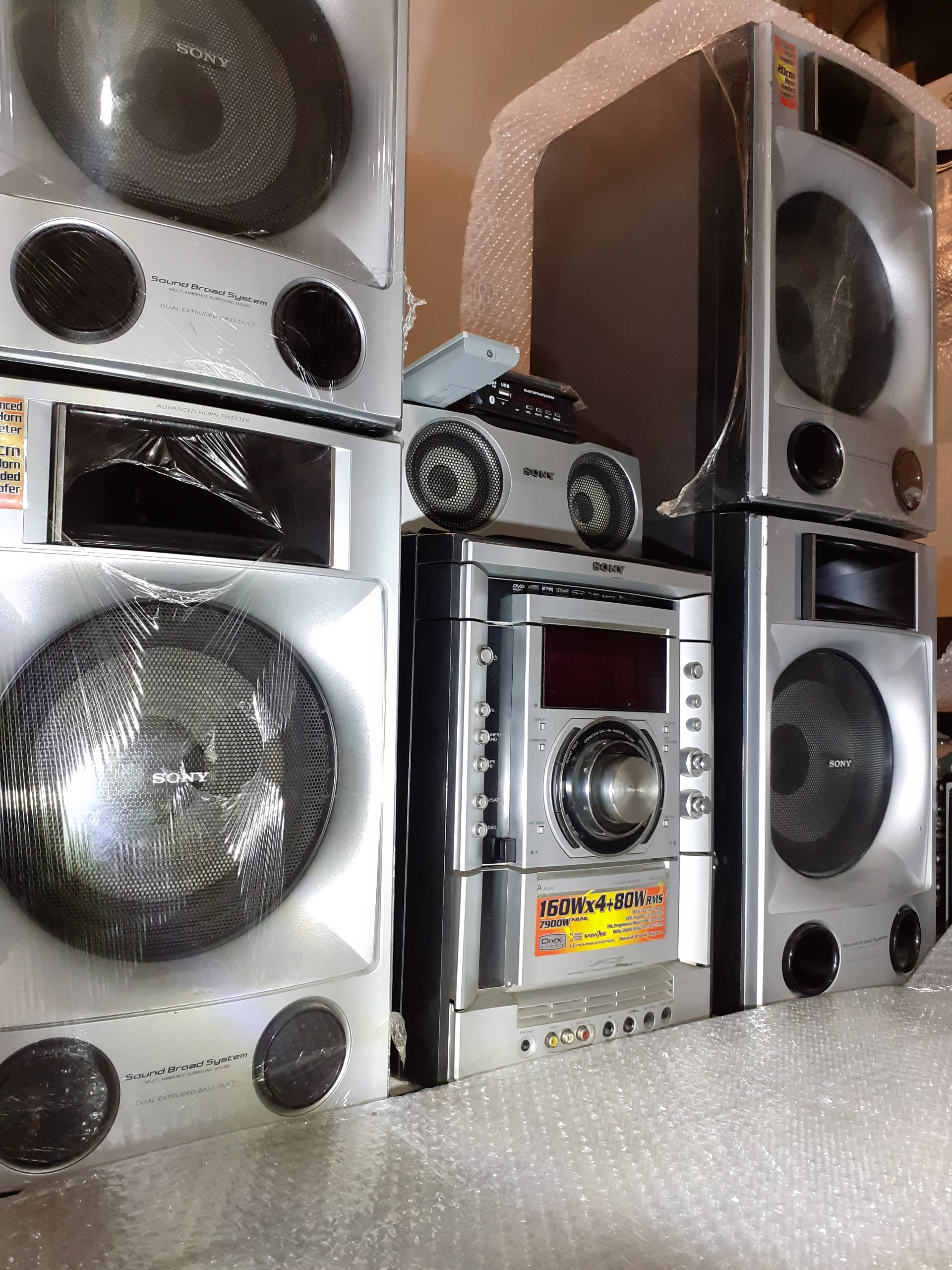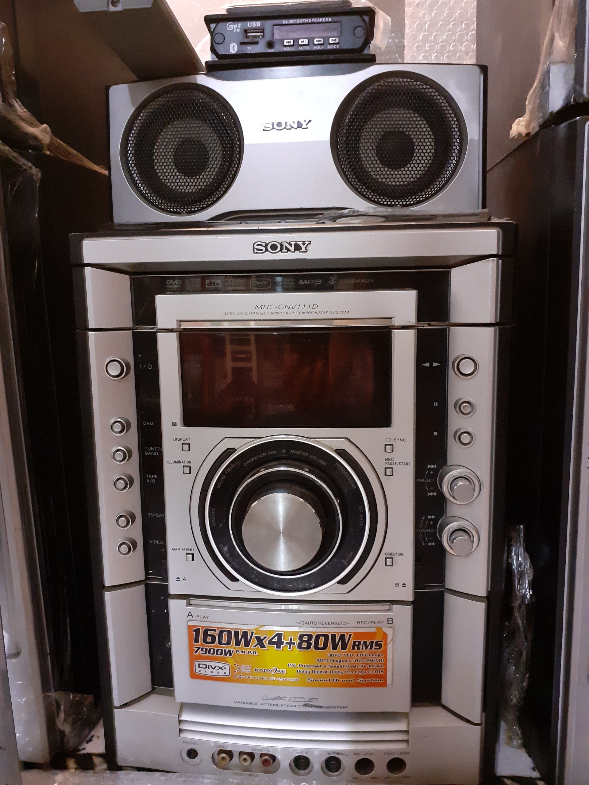 سیستم حرفه ای سونیGN111. درحدنو پرقدرت 7900 وات قدرت خروجی(720واتRMS) 4بلندگو هر کدام 160 واتRMS و یک بلندگو سنتر 80واتRMS