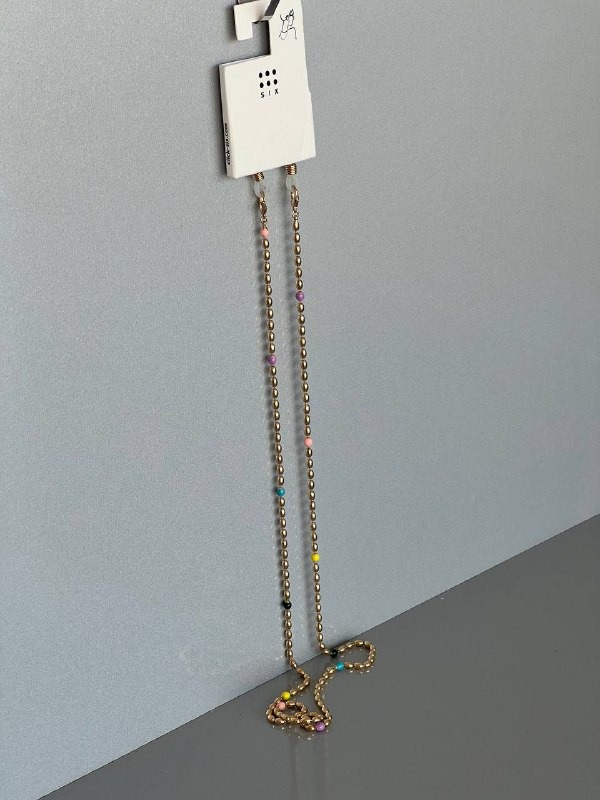 این بند عینک از یک زنجیر بلند با دانههای کوچک و براق طلایی ساخته شده است که در فواصل مشخص، دانههای کوچک و رنگارنگ (مانند صورتی، آبی، سبز و زرد) قرار گرفتهاند. این ترکیب رنگی زیبا، این بند عینک را به یک زیورآلات جذاب و دوستداشتنی تبدیل کرده که به راحتی با استایلهای مختلف ست میشود.