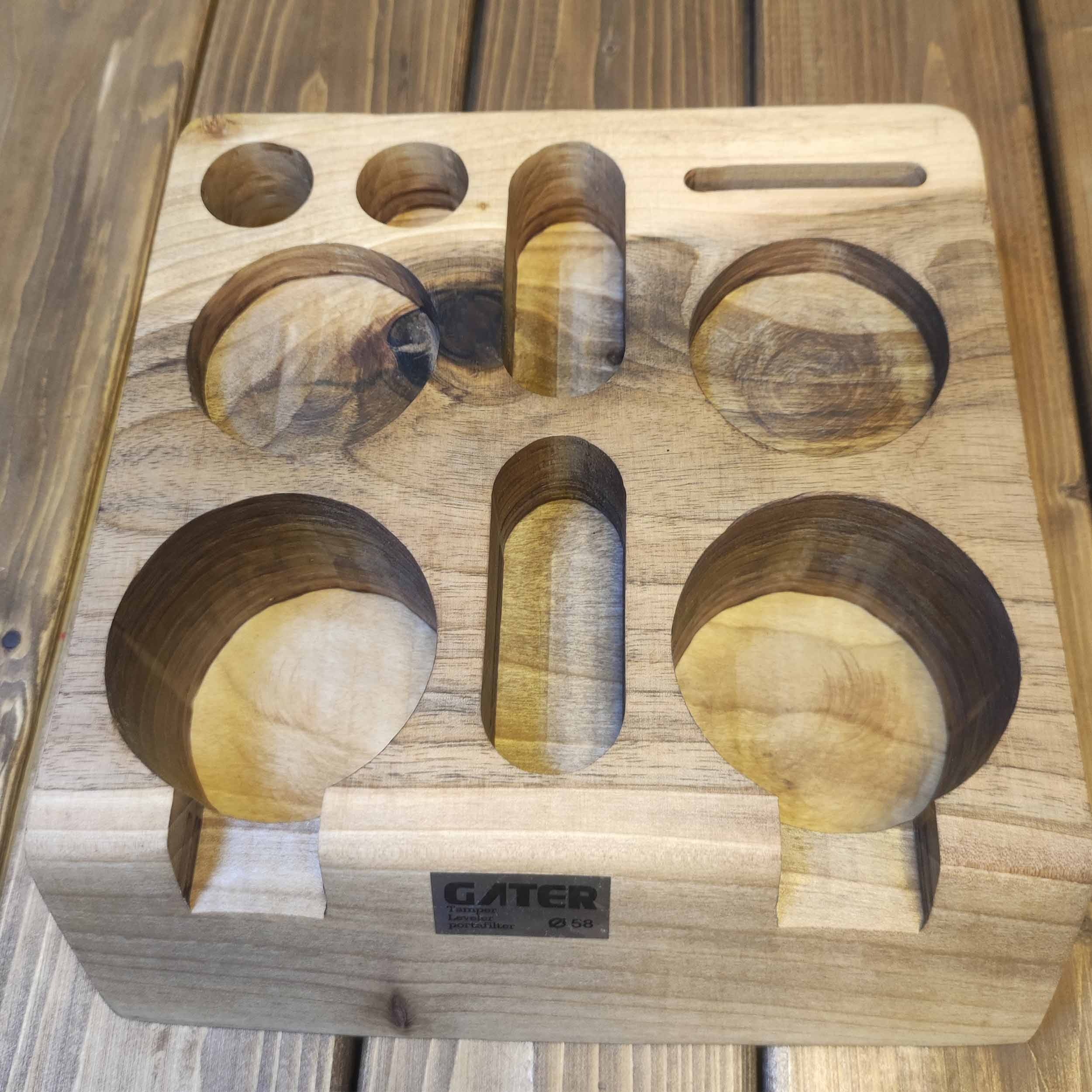 گتر یکی از شناخته شدهترین برندهای سازنده تجهیزات جانبی دستگاه اسپرسو ساز است. این استند از جنس چوب ساخته شده است. در استند MTFD سایز 58 جای مخصوص برای قرار دادن دو عدد پرتافیلتر، تمپر، لولر، نیدل، پاک اسکرین، بسکت، فانل و برس تعبیه شده است. سایز این استند 58 است برای اکثر دستگاههای صنعتی مناسب میباشد.
