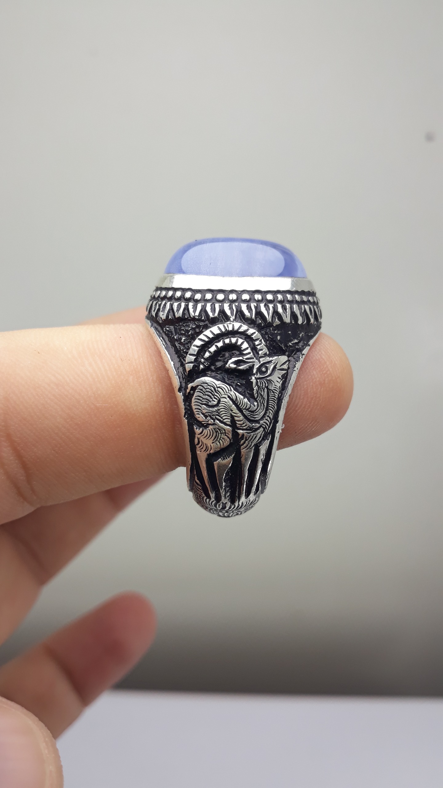 انگشتر نقره نگین استار قلم کاری استاد آزاده