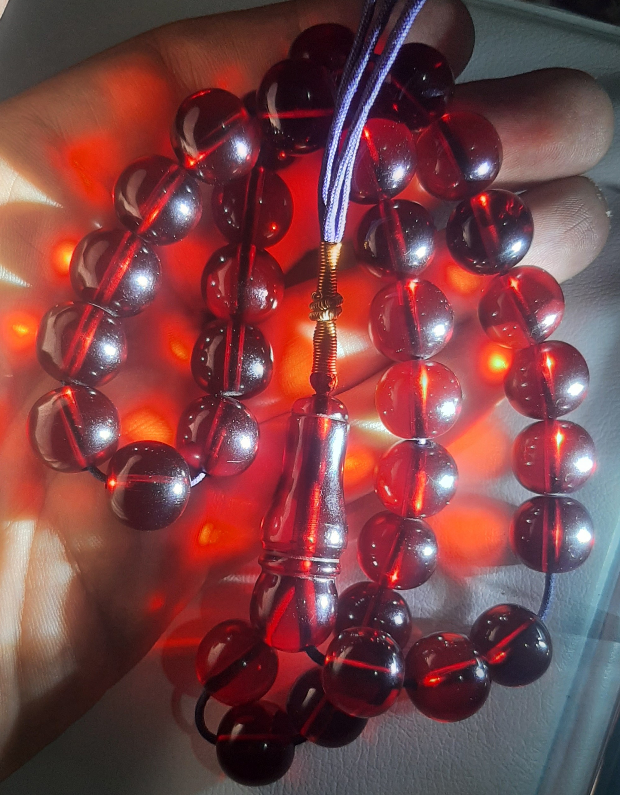 یکی از دانه ها برای امتحان رو آتش گرفته شده و کمی تیره تر شده، عکس اخر تصویرش هست، تسبیح واقعا زیباست و نیاز به تعریف نداره،