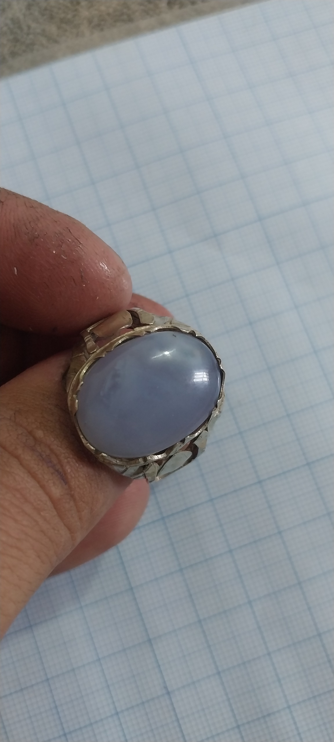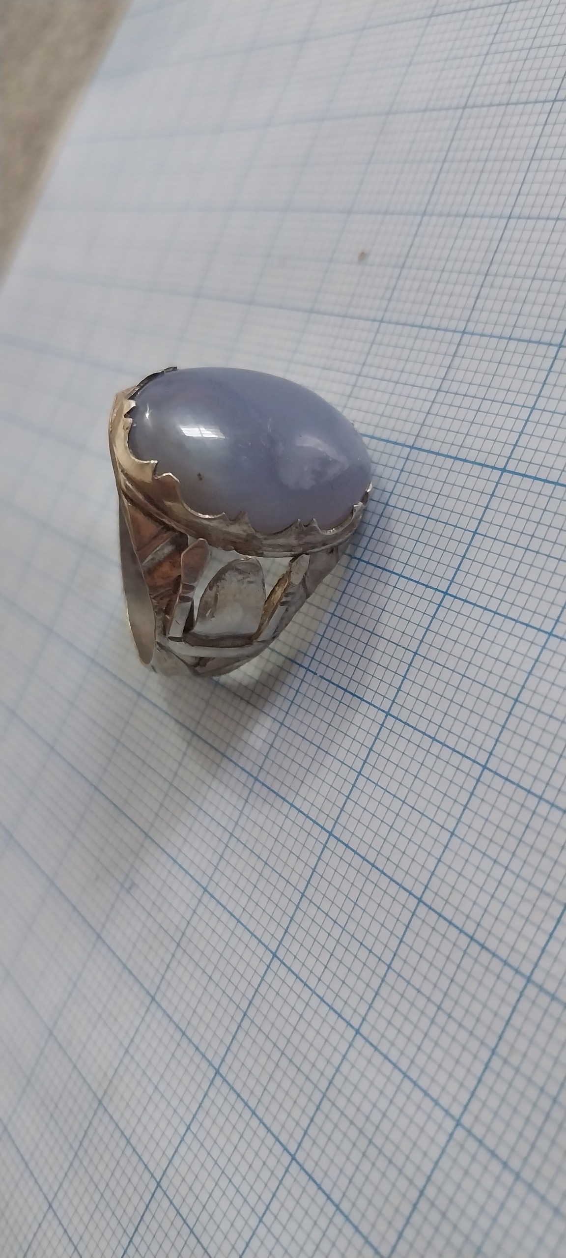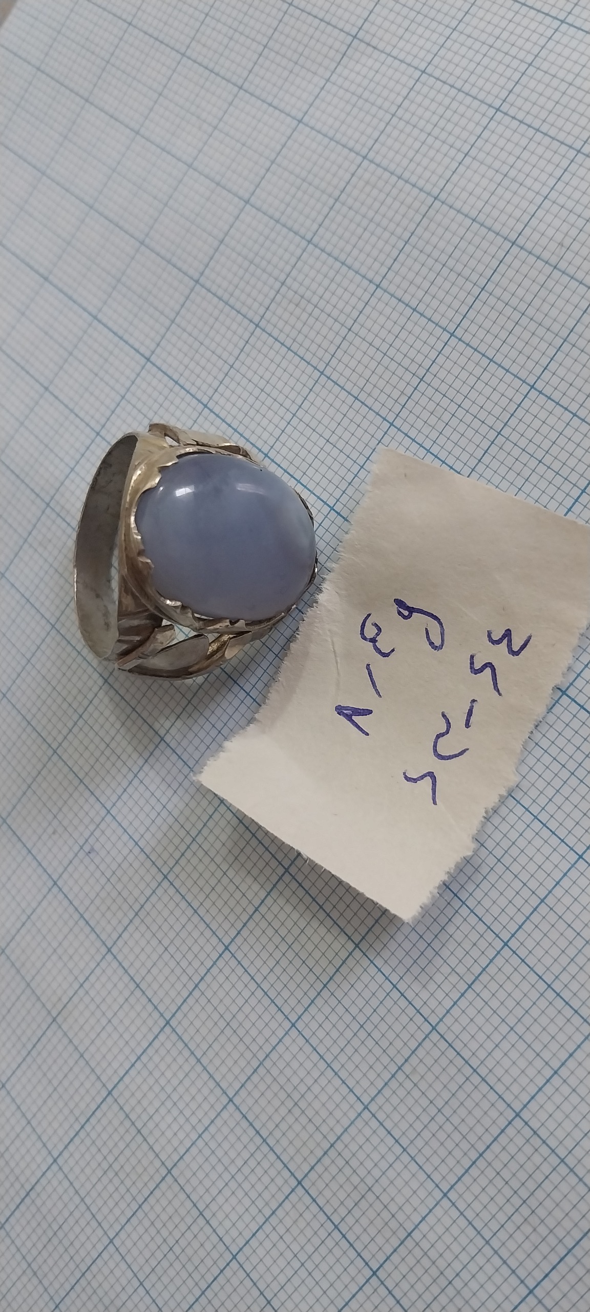 انگشتر نقره925 دست ساز قدیمی با نگین طبیعی عقیق یمانی آبی سایز 65 وزن 8/4 همراه فاکتور