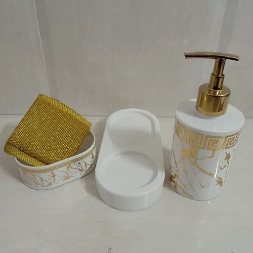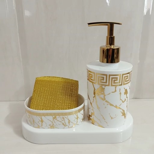 ست جامایع و جا اسکاجی رو سینکی طرح ماربل طلایی