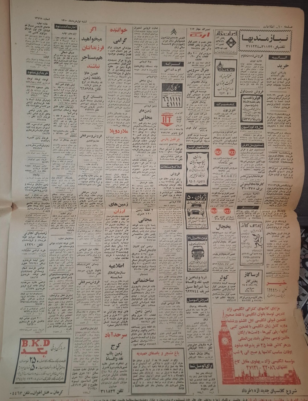 روزنامه قدیمی اطلاعات اول خرداد 1350تعداد صفحه 24 خریدار محترم لطفا با دقت به توضیحات هر کالا دقت بفرمایید کالاها کیفیت شان مطابق با تصویر هست و انواع کتاب، مجله، روزنامه، اسناد و عکسهای قدیمی از دوره قاجار تا پهلوی و اوایل
