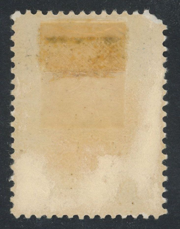گوشه تمبر آسیب دیده و پایین تمبر کاغذ چسبیده است.