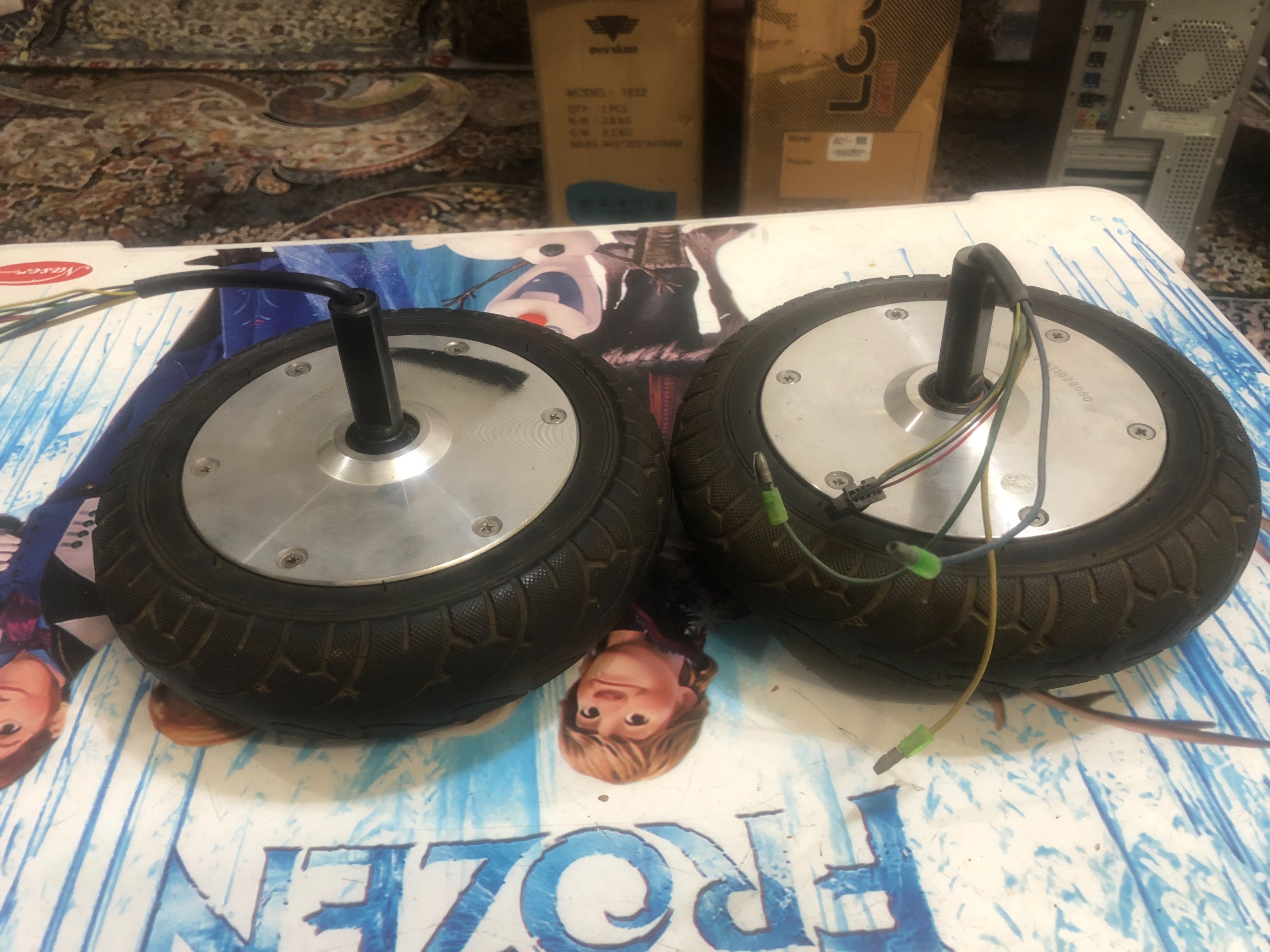 چرخ اسکوتر برقی 36 ولت که موتور براشلس هست و برای ساخت توربین بادی خریداری شده بود اما برای فروش گذاشتم هر چرخ5میلیون تومن قیمتش است و چند کیلو وزن داره