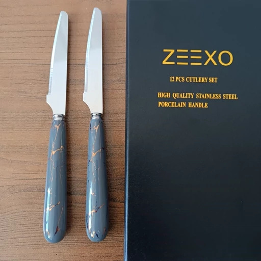 12 عدد کارد میوه با طرح ماربل طوسی طلایی دسته سرامیکی ))