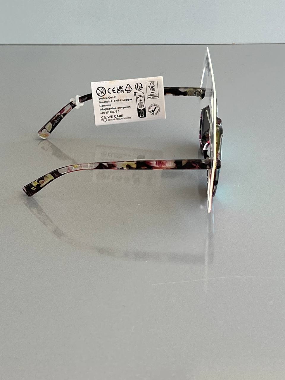 طراحی جذاب و شاد: فریم و دستههایی با طرح گلهای رنگارنگ و ظریف، و لنزهای آینهای آبی و سبز، این عینک را به یک اکسسوری بسیار زیبا و محبوب تبدیل میکند.