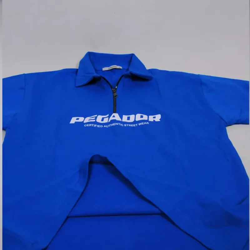 تیشرت یقه دار نیم زیپ باکسی جنس دورس دو نخ