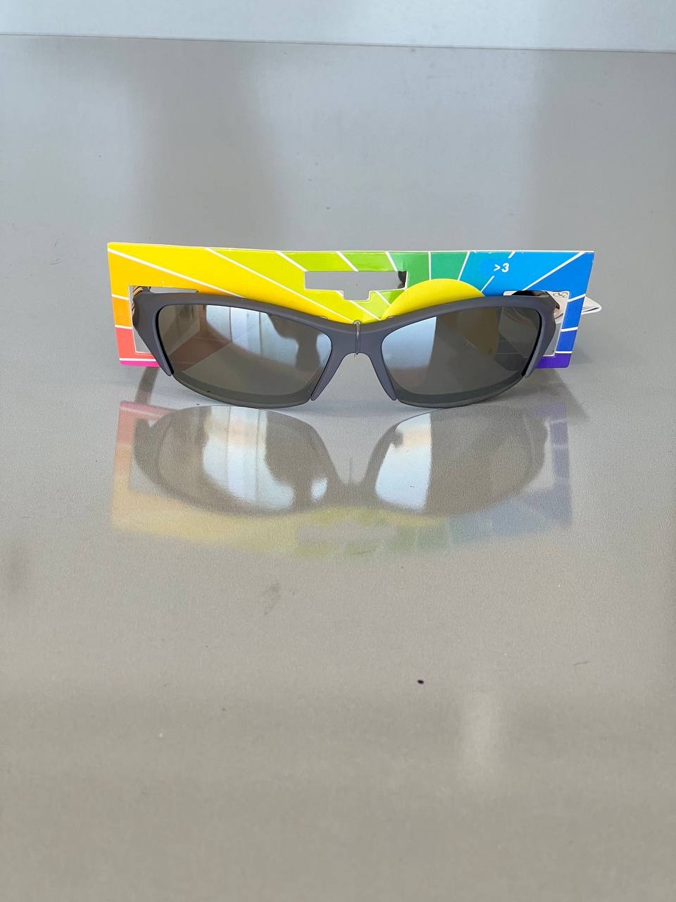 طراحی اسپرت و مدرن: فریم مشکی مات این عینک، ظاهری شیک و اسپرت به آن بخشیده است. نوارهای رنگینکمان بر روی دستهها، به خصوص برای کودکان، بسیار جذاب و سرگرمکننده است. این طراحی، این عینک را از مدلهای ساده متمایز میکند و به آن شخصیت میبخشد.