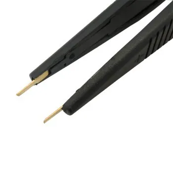 تست است. این پراب شبیه یک پنس با نوک های فلزی بوده که می توان برای تست قطعات SMD، پنس را به دو طرف قطعه SMD متصل نمود. از دیگر ویژگی های این پراب پنسی، عدم نیاز به به کار گیری دو دست هنگام تست قطعات می توان اشاره کرد.
