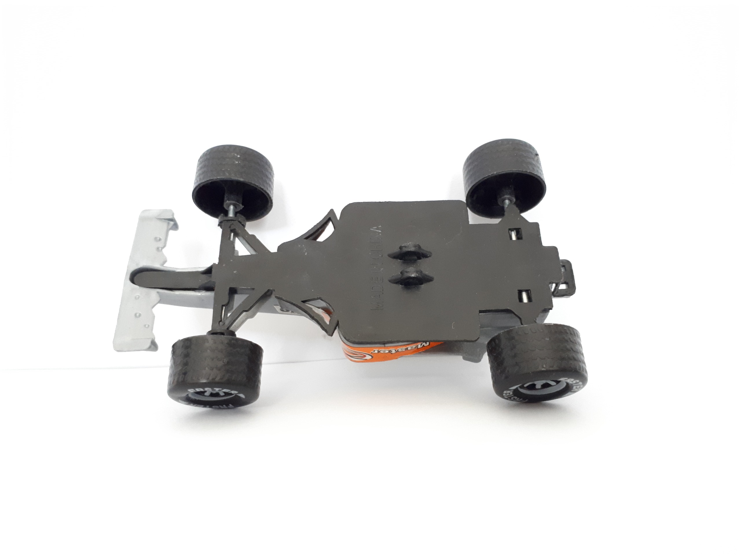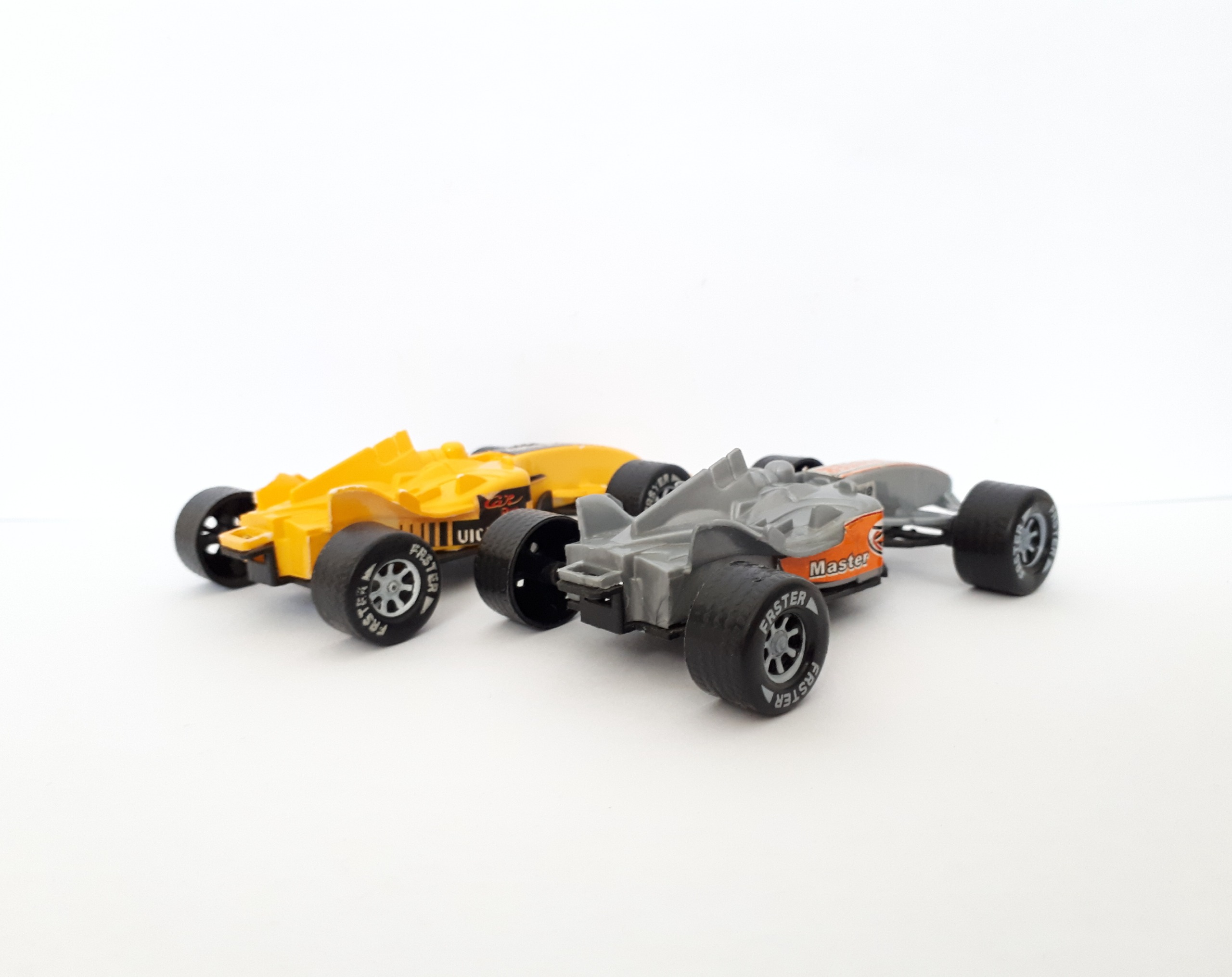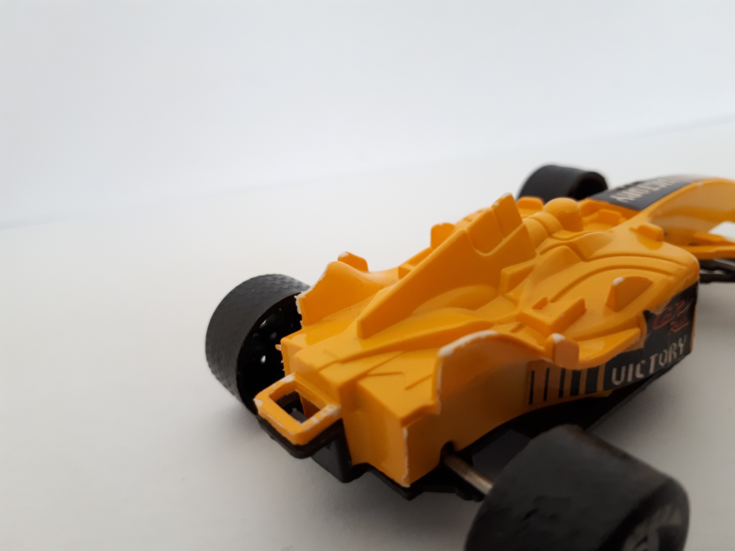 ماشین مسابقه زرد رنگ گلگیرش طبق عکس شکستگی جزئی دارد