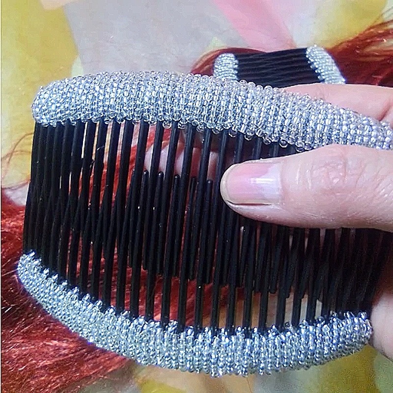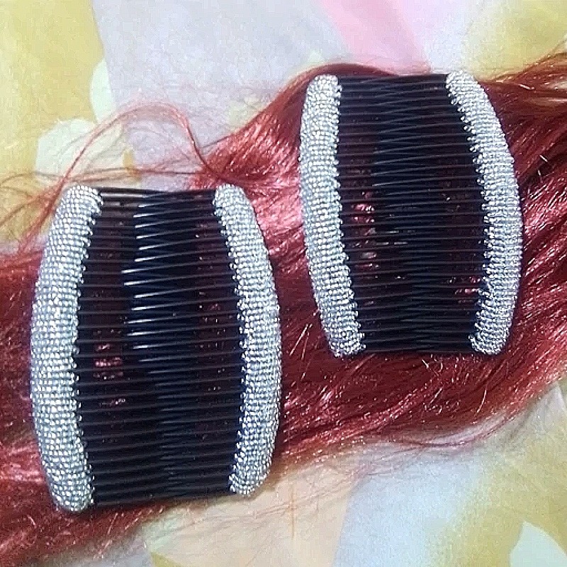 یک جفت شانه نشکن منجوق دوزی شده، سایز بزرگ نشکن، نرم، نقره ای