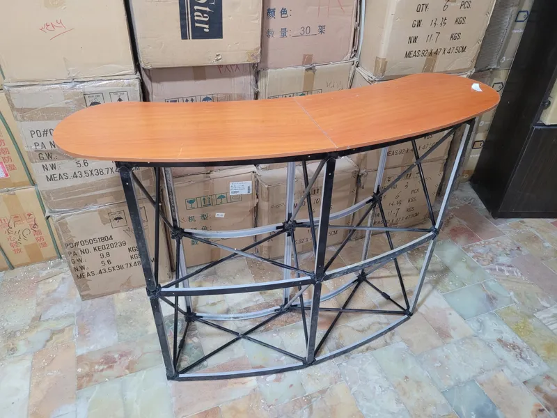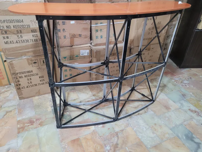 کانتر نمایشگاهی آلومینیومی نصب جمع کردن در یک دقیقه بسیار سبک وزن و جابجایی آسان جهت استفاده نیاز به هیچ چیز ندارد و می توان روی آن بنر یا تبلیغات هم نصب نمود ابعاداسکلت آلومینیومی 130 در 40 سانتیمتر و ارتفاع 90 سانتیمتر است.