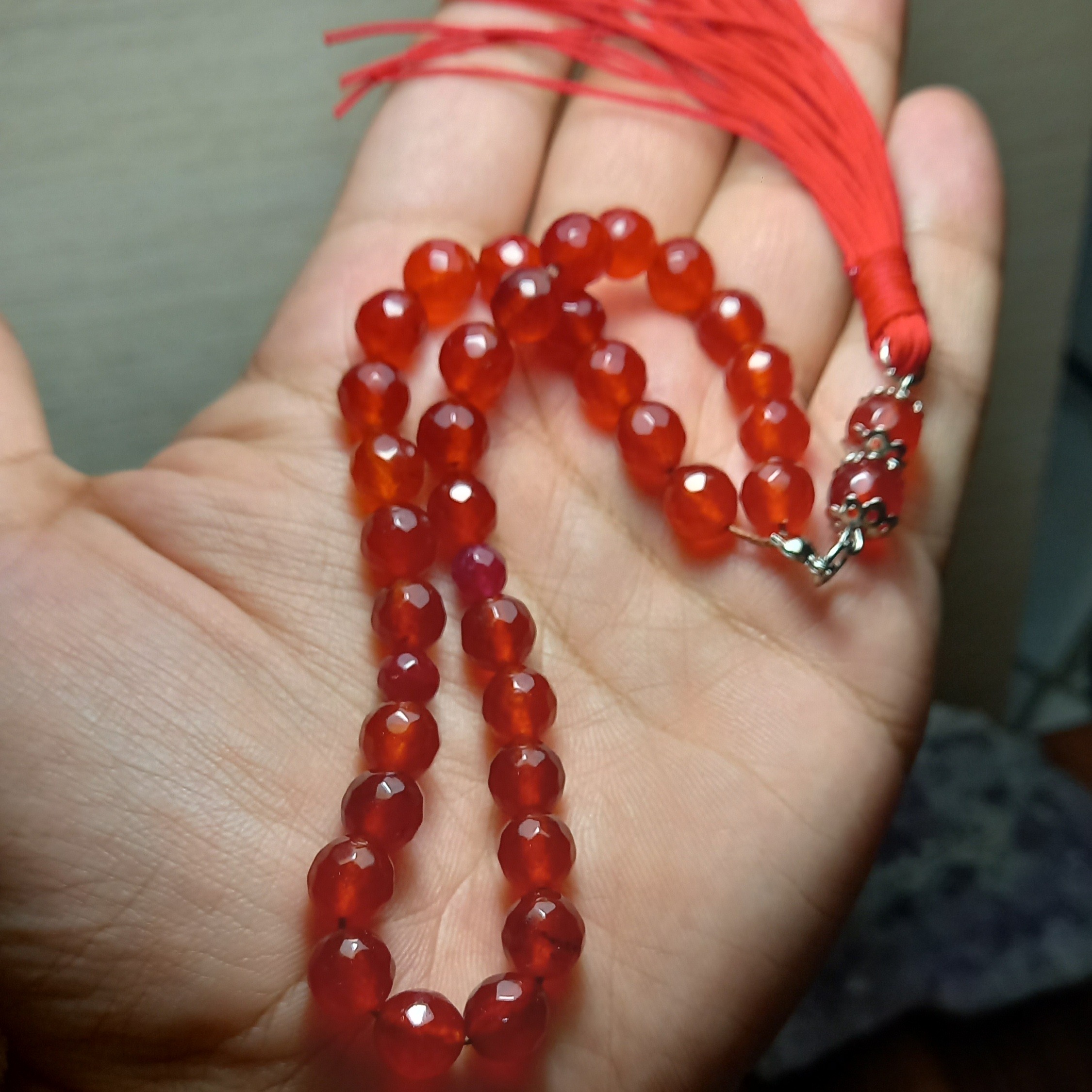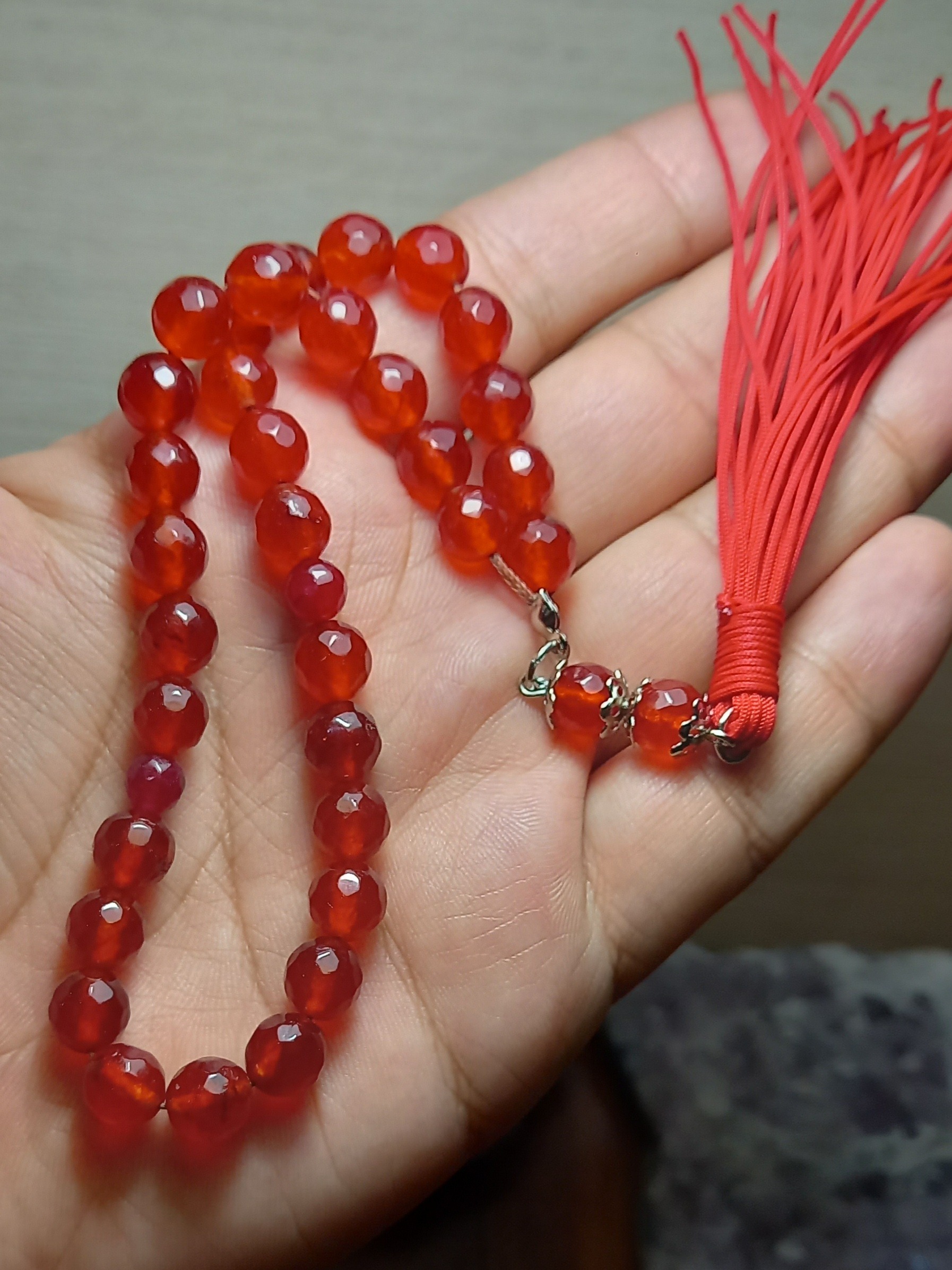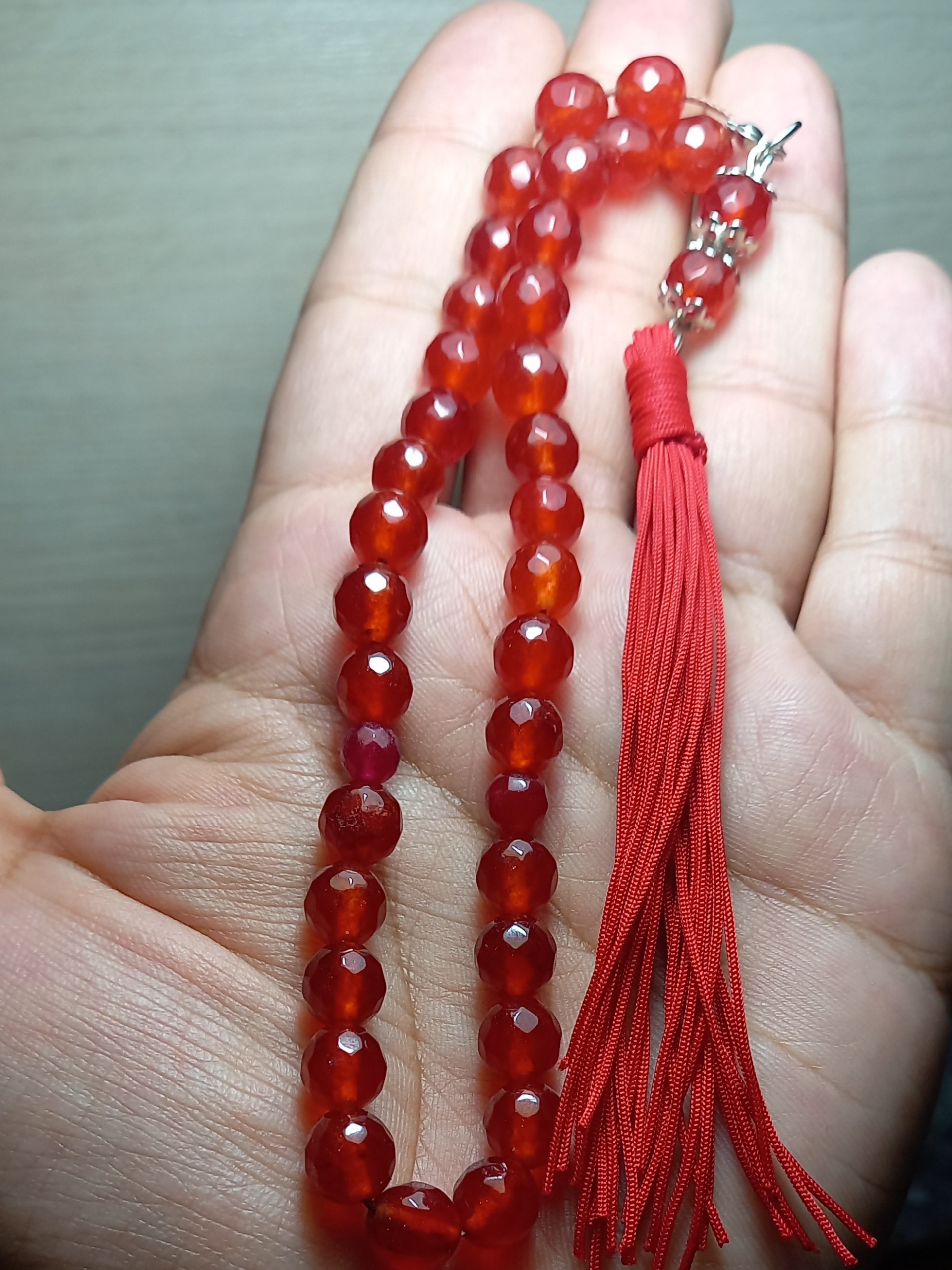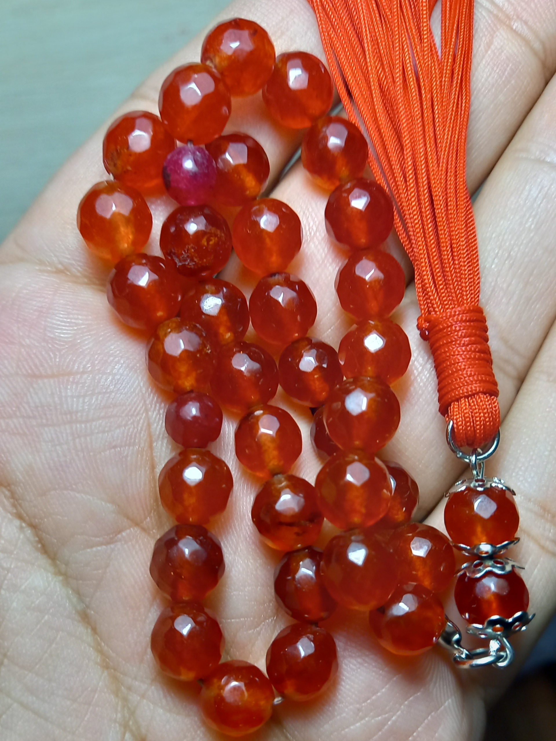 تسبیح عقیق پرتقالی تراش دار مهره 8 میل