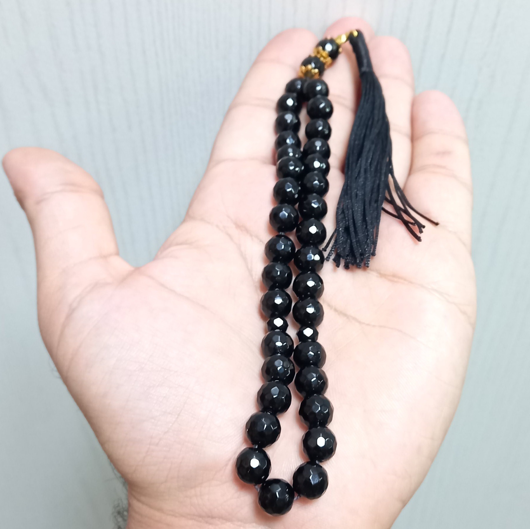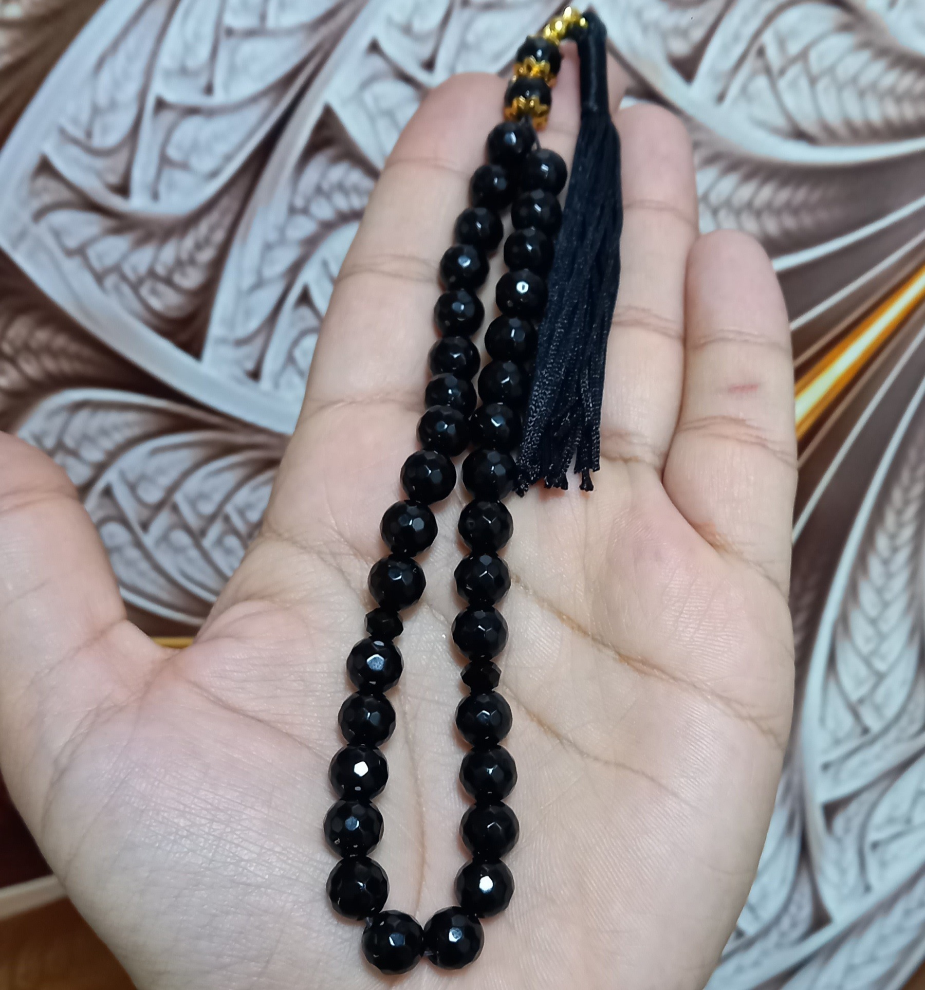تسبیح اونیکس مشکی تراش زنبوری درخشان