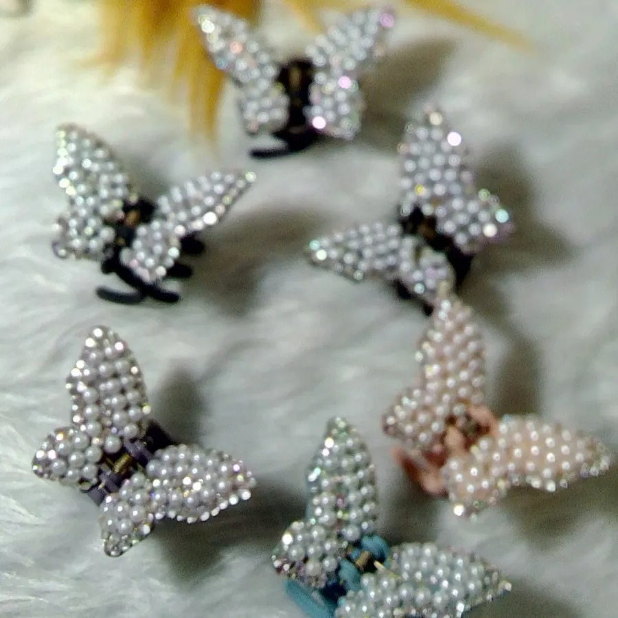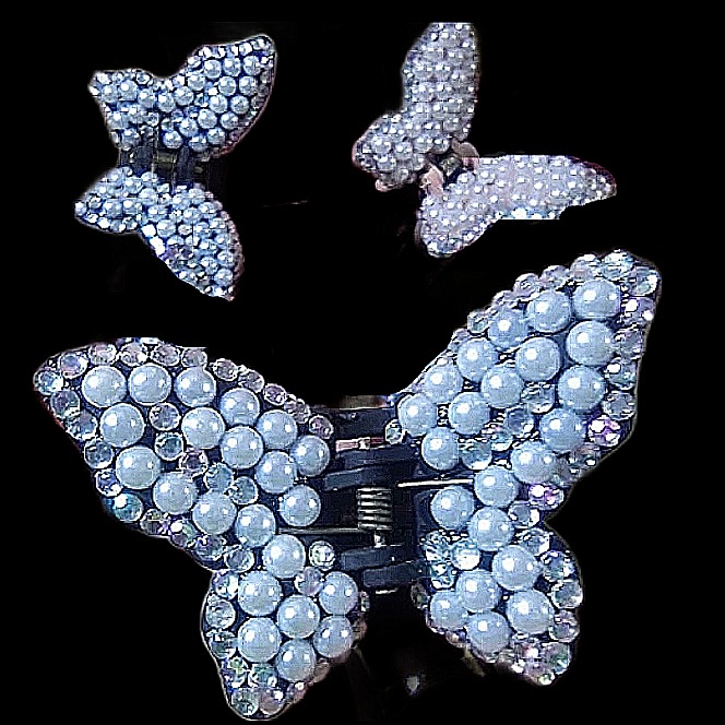 کلیپس مو پروانه ای نگین دار مرواریدی 8 سانتی